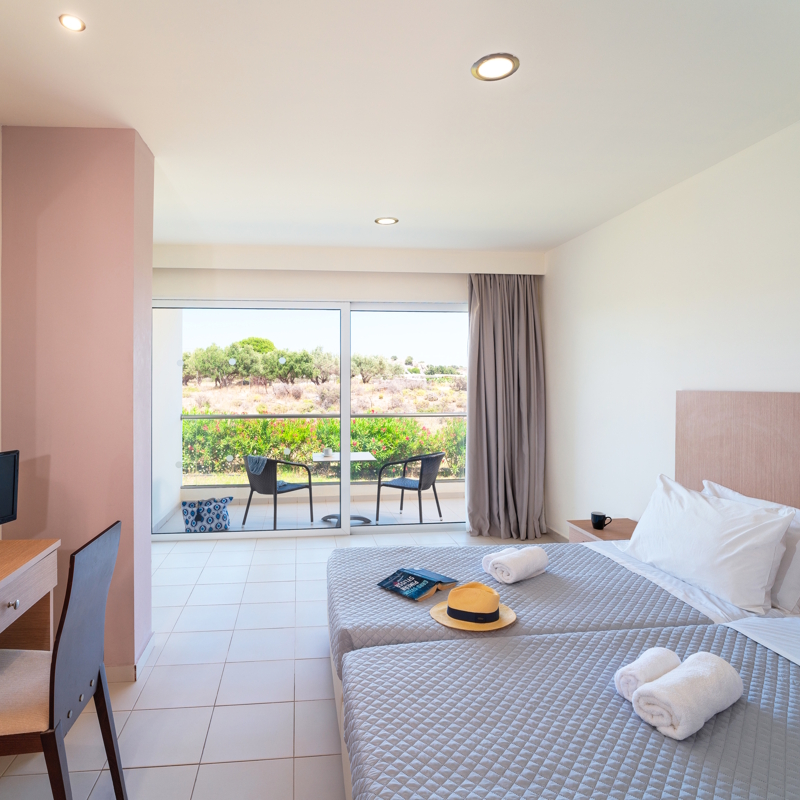 Vous serez logé en chambre standard avec vue jardin ou sur la montagne d’environ 28 m² pouvant accueillir jusqu’à 2 adultes et 1 enfant ou 3 adultes. Toutes les chambres sont équipées de : balcon, 1 lit double ou 2 lits simples, climatisation, télévision, mini-frigo, coffre-fort, salle de bains équipée avec douche et sèche-cheveux, wifi.