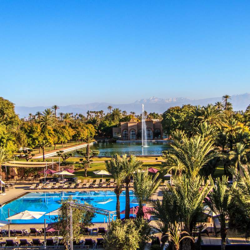 Le Barcelo Palmeraie Oasis Resort 5* est situé en plein cœur de la mythique palmeraie de Marrakech à 15 km de la Place Jemaa el-Fna et à 11 km de l’aéroport international de Marrakech.
