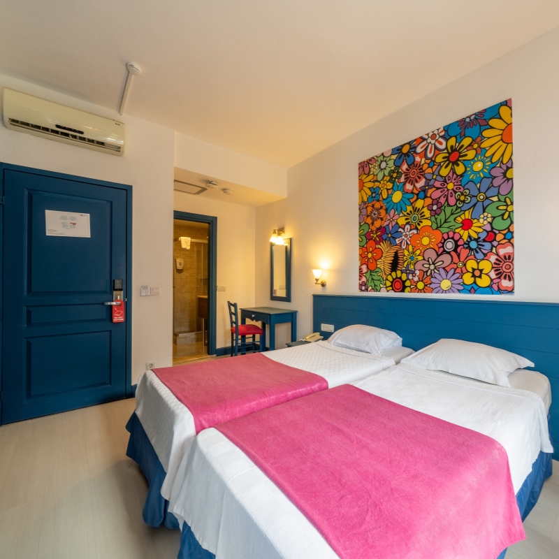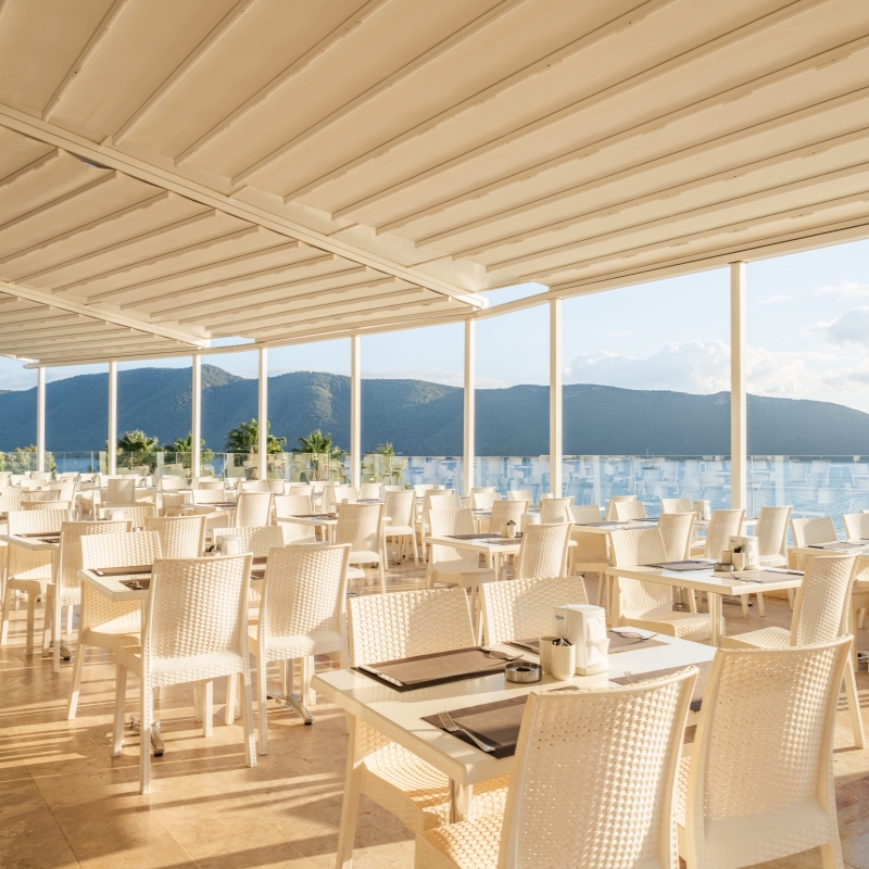 Votre hôtel Le Bodrum Holiday Resort & Spa 5* ouvert en 2002 et rénové en 2016, dispose de 438 chambres décorées avec soin. L’hôtel est situé en bord de mer. À votre disposition : wifi, réception 24h/24, téléphone/fax*, médecin*, boutiques*, blanchisserie*, photographe*, coiffeur*, babysitting*, transats, serviettes de plage et parasols, salle de conférence, parking.*Avec supplémentLes animaux ne sont pas autorisés au sein de l’établissement. Votre chambre Vous serez logé en chambre « club standard » de 24m², disposant d’un grand lit ou deux lits simples. La capacité maximale d'accueil en chambre est de 2 adultes. Elles sont toutes équipées de : balcon français, climatisation, TV par satellite, téléphone*, coffre-fort, salle de bain avec douche, WC et sèche-cheveux, wifi. Le minibar est rempli gratuitement d'eau et de soda le jour de l'arrivée, puis réapprovisionné chaque jour.*Avec supplémentPour plus de confort et moyennant un supplément, l’hôtel dispose de chambre « hôtel standard » de 45m² pouvant accueillir jusqu’à 3 adultes. L’hôtel dispose également de chambre « club standard family » de 47,5m² pouvant accueillir jusqu’à 3 adultes + 1 enfant ou 4 adultes.L’hôtel dispose de chambres PMR (sur demande et selon disponibilité). Le bâtiment principal compte quatre chambres accessibles aux personnes handicapées : deux chambres familiales et deux chambres standard. Cependant, nous tenons à préciser (l’hôtelier) que nous ne recommandons pas cet hôtel en raison de son emplacement . Restaurants et bars Pour que vous profitiez de votre séjour en toute tranquillité, vous bénéficierez pendant votre séjour de la formule ultra tout inclus au restaurant principal de l’hôtel.Votre formule ultra tout inclus comprend : Petit-déjeuner : de 7h30 à 10h00 Petit déjeuner tardif : de 10h00 à 10h30Déjeuner : de 12h30 à 14h00Glaces et cookies : de 15h00 à 17h00Dîner : de 19h00 à 21h00Snack de nuit : de 23h00 à 02h00 (du 15/05 au 30/09) Deux restaurants à la carte sont disponibles sur réservation et avec supplément (25€ par personne) :Olive A la Carte Restaurant : de 19h30 à 21h30 Kebab A la Carte : de 19h30 à 21h30 (du 15/06 au 30/09) Plusieurs bars et snacks sont également à votre disposition :Lobby bar : 24h/24Marin bar : de 20h00 à 01h00 (du 01/06 au 30/09)Café turk bar : de 10h00 à minuit Relax bar : de 10h00 à 17h00 (du 01/06 au 30/09)Beach bar : de 10h30 à 17h30Pool bar : de 10h00 à 17h00 (du 01/06 au 30/09)Aqua bar : de 10h00 à 17h00 Disco : de 20h00 à 01h00 (du 01/06 au 30/09)Les horaires sont donnés à titre indicatif et peuvent être soumis à modification sans préavis. Les jus de fruits frais, les boissons importées, certains cocktails mais aussi les boissons en bouteille ne sont pas comprises. Vos activités et loisirs Une équipe d’animation vous proposera des activités tout au long de la journée et de la soirée ainsi que des spectacles et soirées à thèmes. À votre disposition : piscine principale, piscine aqua, piscine intérieure, aquapark, salle de jeux, billard*, tennis (équipement avec caution), tennis de table, fléchettes, basket-ball, beach-volley, sports nautiques*, live music (certains jours de la semaine), boccia et tir à l'arc.Profitez du centre de spa pour vous accorder un vrai moment de détente et de relaxation grâce aux prestations suivantes : salle de fitness, centre de beauté*, sauna, hammam, massages* et soins*.Pour les enfants : Un mini club accueille vos enfants de 4 à 12 ans, des activités éducatives et amusantes seront proposées. Un service de babysitting* est disponible et les 2 piscines pour enfants ainsi qu’un aquapark sont également à leur disposition.*Avec supplémentÀ noter qu’au vu de la météo, certains équipements extérieurs peuvent ne pas être praticables et certaines activités annulées. Les activités, les sports et les soirées sont encadrées par une équipe d’animation internationale. Locate Situation Le Bodrum Holiday Resort & Spa 5* est situé à 35km de l’aéroport de Bodrum-Milas et à 4km du centre de bodrum.