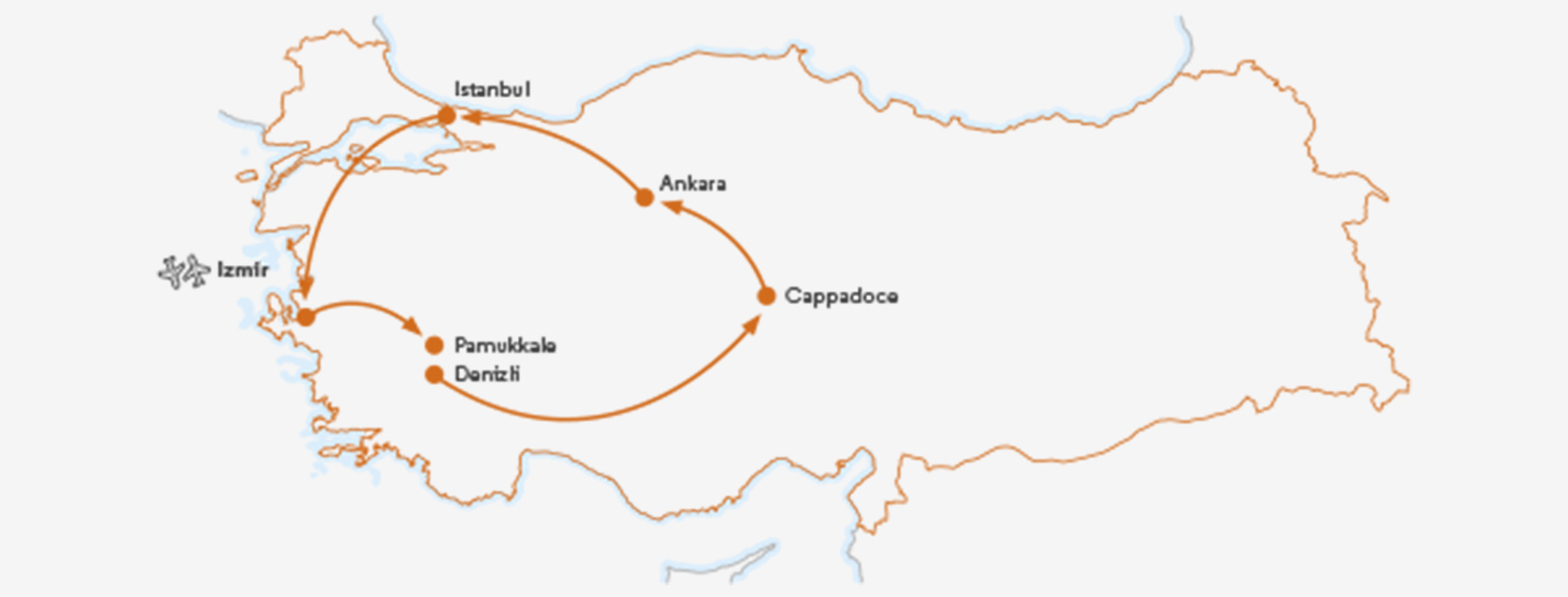 Réserver ce séjour Réserver ce séjour Circuit "Découverte de la Turquie" - Départ Izmir Informations du séjour Lieu de départ BarceloneBordeauxBruxellesBâleBâle/MulhouseGenèveLuxembourgLyonMarseilleNiceNantesParisStuttgartStrasbourgToulouseZurich Durée (nuits) 8 jours / 7 nuits9 jours / 7 nuits Date de départ 2026-05-022026-05-032026-05-092026-05-102026-05-162026-05-172026-05-232026-05-242026-05-302026-05-312026-06-062026-06-072026-06-132026-06-142026-06-202026-06-212026-06-272026-06-282026-07-042026-07-052026-07-112026-07-122026-07-182026-07-192026-07-252026-07-262026-08-012026-08-022026-08-082026-08-092026-08-152026-08-162026-08-222026-08-232026-08-292026-08-302026-09-052026-09-062026-09-132026-09-202026-09-272026-10-042026-10-112026-10-182026-10-252026-09-122026-09-192026-09-262026-10-032026-10-102026-10-172026-10-24 Nombre de voyageurs Adultes 1234567891011121314 Enfants 0123456789 Bébé 0123456789 Date de départ {"2026-05-02":{"start_date":"2026-05-02","price":"929","original_price":"0","flex":false},"2026-05-03":{"start_date":"2026-05-03","price":"859","original_price":"0","flex":false},"2026-05-09":{"start_date":"2026-05-09","price":"959","original_price":"0","flex":false},"2026-05-10":{"start_date":"2026-05-10","price":"869","original_price":"0","flex":false},"2026-05-16":{"start_date":"2026-05-16","price":"869","original_price":"0","flex":false},"2026-05-17":{"start_date":"2026-05-17","price":"859","original_price":"0","flex":false},"2026-05-23":{"start_date":"2026-05-23","price":"909","original_price":"0","flex":false},"2026-05-24":{"start_date":"2026-05-24","price":"909","original_price":"0","flex":false},"2026-05-30":{"start_date":"2026-05-30","price":"829","original_price":"0","flex":false},"2026-05-31":{"start_date":"2026-05-31","price":"819","original_price":"0","flex":false},"2026-06-06":{"start_date":"2026-06-06","price":"899","original_price":"0","flex":false},"2026-06-07":{"start_date":"2026-06-07","price":"899","original_price":"0","flex":false},"2026-06-13":{"start_date":"2026-06-13","price":"839","original_price":"0","flex":false},"2026-06-14":{"start_date":"2026-06-14","price":"829","original_price":"0","flex":false},"2026-06-20":{"start_date":"2026-06-20","price":"889","original_price":"0","flex":false},"2026-06-21":{"start_date":"2026-06-21","price":"889","original_price":"0","flex":false},"2026-06-27":{"start_date":"2026-06-27","price":"949","original_price":"0","flex":false},"2026-06-28":{"start_date":"2026-06-28","price":"939","original_price":"0","flex":false},"2026-07-04":{"start_date":"2026-07-04","price":"1099","original_price":"0","flex":false},"2026-07-05":{"start_date":"2026-07-05","price":"1089","original_price":"0","flex":false},"2026-07-11":{"start_date":"2026-07-11","price":"1159","original_price":"0","flex":false},"2026-07-12":{"start_date":"2026-07-12","price":"1159","original_price":"0","flex":false},"2026-07-18":{"start_date":"2026-07-18","price":"1199","original_price":"0","flex":false},"2026-07-19":{"start_date":"2026-07-19","price":"1199","original_price":"0","flex":false},"2026-07-25":{"start_date":"2026-07-25","price":"1229","original_price":"0","flex":false},"2026-07-26":{"start_date":"2026-07-26","price":"1229","original_price":"0","flex":false},"2026-08-01":{"start_date":"2026-08-01","price":"1339","original_price":"0","flex":false},"2026-08-02":{"start_date":"2026-08-02","price":"1339","original_price":"0","flex":false},"2026-08-08":{"start_date":"2026-08-08","price":"1399","original_price":"0","flex":false},"2026-08-09":{"start_date":"2026-08-09","price":"1399","original_price":"0","flex":false},"2026-08-15":{"start_date":"2026-08-15","price":"1399","original_price":"0","flex":false},"2026-08-16":{"start_date":"2026-08-16","price":"1399","original_price":"0","flex":false},"2026-08-22":{"start_date":"2026-08-22","price":"1289","original_price":"0","flex":false},"2026-08-23":{"start_date":"2026-08-23","price":"1279","original_price":"0","flex":false},"2026-08-29":{"start_date":"2026-08-29","price":"1069","original_price":"0","flex":false},"2026-08-30":{"start_date":"2026-08-30","price":"1069","original_price":"0","flex":false},"2026-09-05":{"start_date":"2026-09-05","price":"989","original_price":"0","flex":false},"2026-09-06":{"start_date":"2026-09-06","price":"1009","original_price":"0","flex":false},"2026-09-13":{"start_date":"2026-09-13","price":"1039","original_price":"0","flex":false},"2026-09-20":{"start_date":"2026-09-20","price":"1109","original_price":"0","flex":false},"2026-09-27":{"start_date":"2026-09-27","price":"1089","original_price":"0","flex":false},"2026-10-04":{"start_date":"2026-10-04","price":"979","original_price":"0","flex":false},"2026-10-11":{"start_date":"2026-10-11","price":"1009","original_price":"0","flex":false},"2026-10-18":{"start_date":"2026-10-18","price":"1349","original_price":"0","flex":false},"2026-10-25":{"start_date":"2026-10-25","price":"1349","original_price":"0","flex":false},"2026-09-12":{"start_date":"2026-09-12","price":"1432","original_price":"0","flex":true},"2026-09-19":{"start_date":"2026-09-19","price":"1074","original_price":"0","flex":true},"2026-09-26":{"start_date":"2026-09-26","price":"1104","original_price":"0","flex":true},"2026-10-03":{"start_date":"2026-10-03","price":"1063","original_price":"0","flex":true},"2026-10-10":{"start_date":"2026-10-10","price":"1092","original_price":"0","flex":true},"2026-10-17":{"start_date":"2026-10-17","price":"1327","original_price":"0","flex":true},"2026-10-24":{"start_date":"2026-10-24","price":"1204","original_price":"0","flex":true}} Total T.T.C à partir de 929,00 € par personnePrix TTC par personne sur la base d’une chambre double Circuit "Découverte de la Turquie" - Départ Izmir Un programme complet pour découvrir les richesses incontournables du pays. PartagerEmailFacebookTwitterWhatsApp Votre circuit en bref Jour 1 : France / IzmirJour 2 : Selçuk / Ephèse / Pamukkale / DenizliJour 3 : Denizli / Konya / Cappadoce