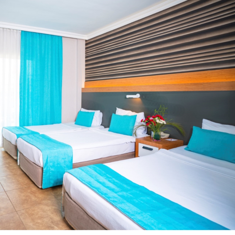 Votre Hôtel Le Club Hôtel Sunbel se compose de 136 chambres réparties dans un bâtiment principal de 4 étages. Posez vos valises dans ce complexe ouvert en 2002 et rénové pour 2025 situé en bord de mer et où chaque membre de la famille trouvera son bonheur, que ce soit au centre de spa ou dans la piscine extérieure du complexe équipée de toboggans. À votre disposition : réception 24/24, centre de remise en forme*, médecin* (sur demande), wifi gratuit dans tout le club, plage privée, transats et parasols, serviettes de plage.*Avec supplément Votre chambre Vous séjournerez dans une confortable chambre standard, à la décoration moderne et aux couleurs chaudes, d’une superficie de 17-22m². Les chambres sont composées d’un lit double ou deux lits simples et d’un lit d’appoint qui peuvent accueillir jusqu’à 3 adultes ou 2 adultes et 1 enfant. Toutes les chambres sont équipées de : balcon, carrelage, téléphone*, télévision satellite, coffre-fort*, climatisation, salle de bains avec douche et sèche-cheveux, mini-bar*, wifi gratuit.Dans le cadre d'une chambre à usage quadruple, vous serez logé en large room de 26-28m² environ équipée d'un lit double ou deux lits simples et de lits d’appoints. La capacité d’accueil est de 2 adultes et 2 enfants ou 3 adultes et 1 enfant.*Avec supplément Restaurants et bars Afin de vivre des vacances sans contraintes et varier les plaisirs, vous séjournerez en formule tout inclus comprenant les repas, les boissons locales alcoolisées ou non et les snacks tout cela de 10h00 jusqu’à 23h00. Les repas ci-dessous sont servis sous forme de buffet, au restaurant principal :Petit déjeuner : de 7h30 à 9h30Déjeuner : de 12h30 à 14h00Dîner : de 19h00 à 21h00Un service de snack vous sera proposé au restaurant en terrasse de 10h30 à 12h00 et de 14h30 à 16h00Deux bars seront à votre disposition :Restaurant bar : 10h00 à 23h00Pool bar : de 10h00 à 23h00*Avec supplémentÀ noter que toutes les boissons sont en supplément après 23h00. Les horaires et services sont donnés à titre indicatif et peuvent être soumis à modification sans préavis. Les jus de fruits frais, les boissons importées, les boissons en bouteille et le café turc ne sont pas inclus dans la formule Vos activités et loisirs Le club Hotel Sunbel proposera des activités sportives et ludiques en journée ainsi que des animations. À votre disposition : piscine extérieure avec toboggans, piscine pour enfants, bains turcs (seulement sur réservation de 12h00 à 14h00), plage privée, tennis de tableVenez-vous relaxer au centre de spa où plusieurs prestations y sont proposées : sauna, hammam, bain turc, salle de fitness, soins* et massages**Avec supplémentPour les enfants : Chaque après-midi à 15h30, des activités de peinture ainsi que diverses animations sont proposées.À noter qu’au vu de la météo, certains équipements extérieurs peuvent ne pas être praticables et certaines activités annulées. Les activités, les sports et les soirées sont encadrés par une équipe d’animation internationale. Locate Situation L’hôtel se situe en bord de mer à 14 km de la ville de Kemer et à 25 km de l’aéroport international d’Antalya.