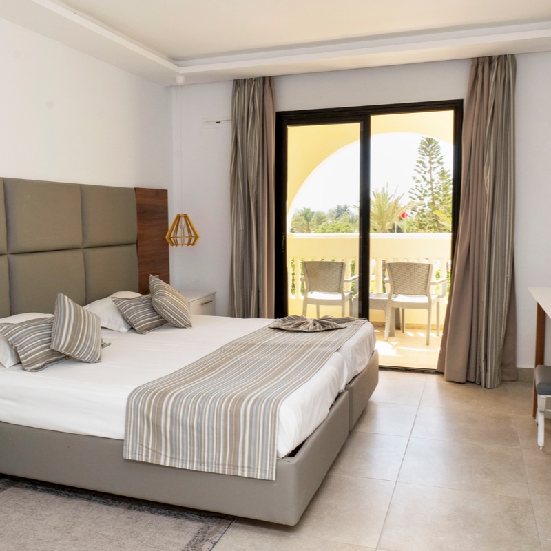 L’hôtel Djerba Aqua Resort dispose de 281 chambres spacieuses réparties sur 2 étages. Il met à votre disposition : réception 24h/24, distributeur automatique de billets, blanchisserie et nettoyage à sec*, service de change, boutiques, salon de coiffure*, infirmerie, location de voiture*, location de vélo*, wifi dans les espaces communs et au bord de la piscine.