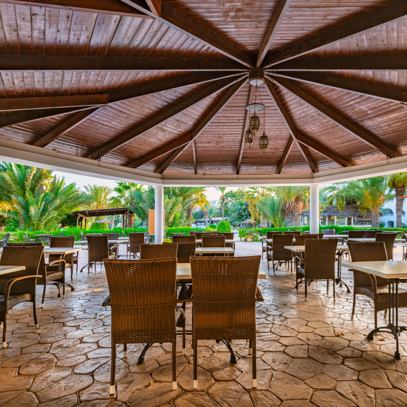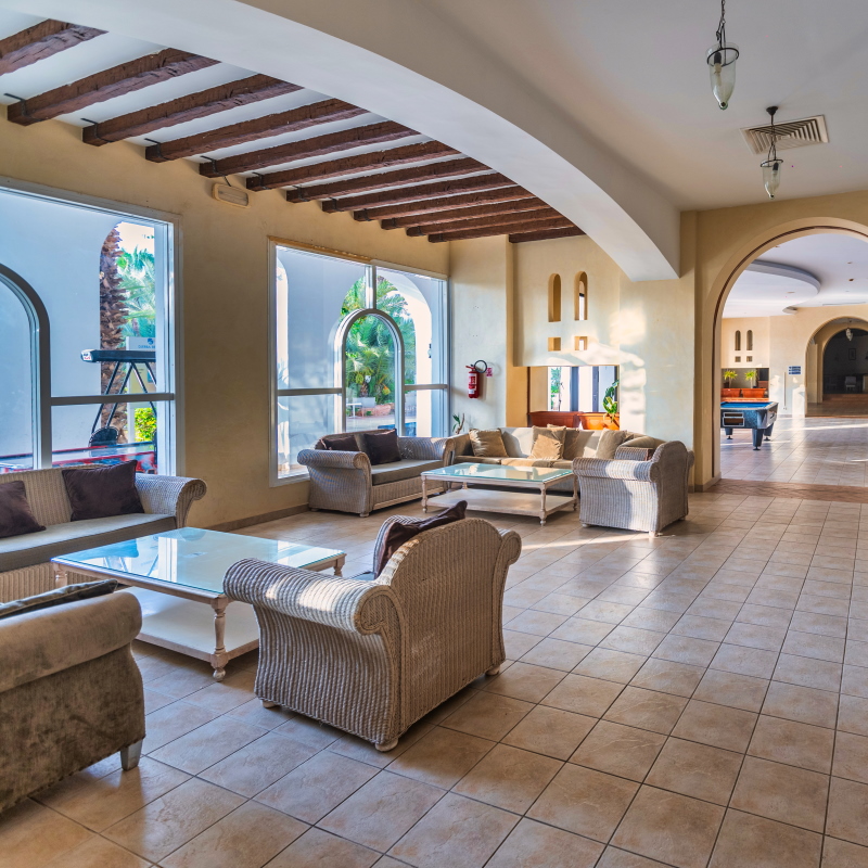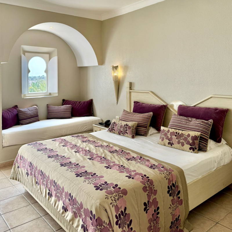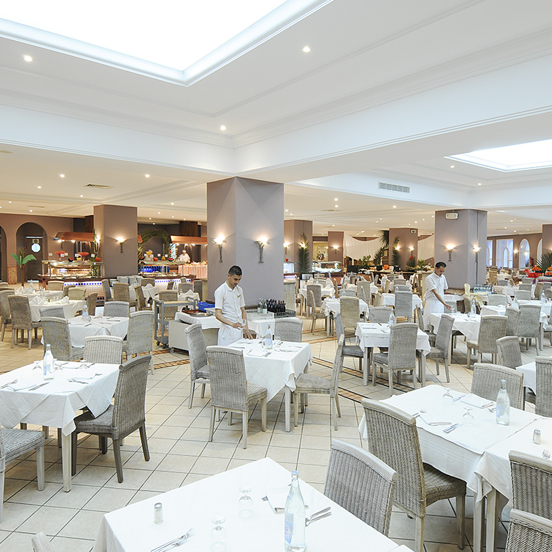 Votre hôtel L’hôtel dispose de 416 chambres réparties en un bloc central et deux blocs extérieurs avec patio-jardin. Il se trouve à 700 m d’une magnifique plage privée de sable fin (transfert gratuit pendant la saison estivale). A votre disposition : parking*, baby-sitting sur demande*, photographe*, location de voiture*, wifi dans le hall de la réception, bar principal, terrasse du bar, chambre, café turc et terrasse de la piscine.*Avec supplément Votre chambre Pour un séjour agréable, vous serez logé en chambre standard avec balcon ou terrasse, d’environ 32m². Les chambres sont dotées d’un grand lit ou de deux lits simples. La capacité maximale d'accueil en chambre est de 3 personnes. Elles sont toutes équipées de : climatisation (du 15/06 au 15/09), chauffage (du 01/12 au 31/03), mini frigo (sur demande), coffre-fort, télévision par satellite, téléphone, salle de bains équipée avec sèche-cheveux.*Avec supplément Dans le cas d'une chambre à usage triple, l'hôtel met à disposition des clients une chambre double équipée d'un lit double (ou de 2 lits twin) et d’un lit d'appoint (sofa, canapé lit). Restaurants et bars Séjournez l’esprit libre avec la formule « Tout inclus », qui inclut aussi bien les repas servis sous forme de buffet au restaurant principal de l’hôtel « Jasmin », où vous découvrirez des saveurs locales et internationales, ainsi que les boissons locales alcoolisées ou non et les snacks.Votre formule tout inclus comprend : Petit-déjeuner buffet : 07h00 – 10h00Déjeuner : 12h30 – 14h30 Goûter : 16h00 - 17h00Dîner : 19h00 – 21h30Diner Tardif : 22h00 – 23h30Restaurant « Barbecue »:Petit-déjeuner tardif : 10h00 - 11h00Déjeuner: 10h00 – 11h00Gouter : 16h00 – 17h00 Diner: 19h00 – 20h00 Plusieurs bars seront également à votre disposition :Bar central « Lys » : 09h00 – 23h30Bar « Anemone » : 16h00 – 23h30Bar de la plage « La rose du sable » : 10h00 – 17h00 A noter: les horaires sont donnés à titre indicatif et peuvent être soumis à modification sans préavis de la part de l’hôtelier et ce, sans que la responsabilité de Mondial Tourisme en soit engagée. Les jus de fruits frais, les boissons importées, les cocktails mais aussi les boissons en bouteille ne sont pas compris. Vos activités et loisirs Pour rendre votre séjour agréable, profitez des nombreuses activités qui vous seront proposées parmi lesquelles : piscine extérieure, piscine pour enfants avec mini toboggan, piscine couverte avec solarium (chauffée en hiver du 01/12 au 31/03), chaises longues et parasols à la piscine et à la plage, serviettes de piscine et plage (en caution), tir à l’arc, badminton, volley ball, aqua gym, terrain multi sport, mini-golf, tennis de table, canoë, bateau à pédales, planche à voile (disponible d’avril à octobre), 3 courts de tennis avec cours d’initiation collectifs : éclairage payant, location de raquettes et balles*, cours de tennis et de planche à voile*, quad*, équitation, discothèque, canoë en été, bateau à pédales en été.L’hôtel dispose d’un centre de Balnéothérapie* avec hammam, hydro massages et plusieurs types de cures*. Ouvert de 9h00 à 13h00 et de 15h00 à 19h00.*Avec supplément À proximité et avec supplément : golf (27 trous), casino et bowling, centre de plongée, catamaran et autres activités nautiques.Pour les enfants : un mini club est proposé aux enfants de 4 à 12 ans du lundi au samedi (de 10h00 à 12h30 et de 15h00 17h00). Il dispose également de salle vidéo, aire de jeux, mini-théâtre, salle de jeux et mini-disco de 20h00 à 20h30. Le programme d’animation est adapté à l’âge des enfants.Avec supplément, un service baby-sitting est disponible sur demande.À noter qu’au vu de la météo, certains équipements extérieurs peuvent ne pas être praticables et certaines activités annulées. Locate Situation Dans la zone touristique de Midoun, la plus animée de l’île de Djerba. L’aéroport international de Djerba se trouve à 25km, la ville la plus proche (Midoun) à 3km, et la capitale de l’île (Houmt Souk) à 15 km.