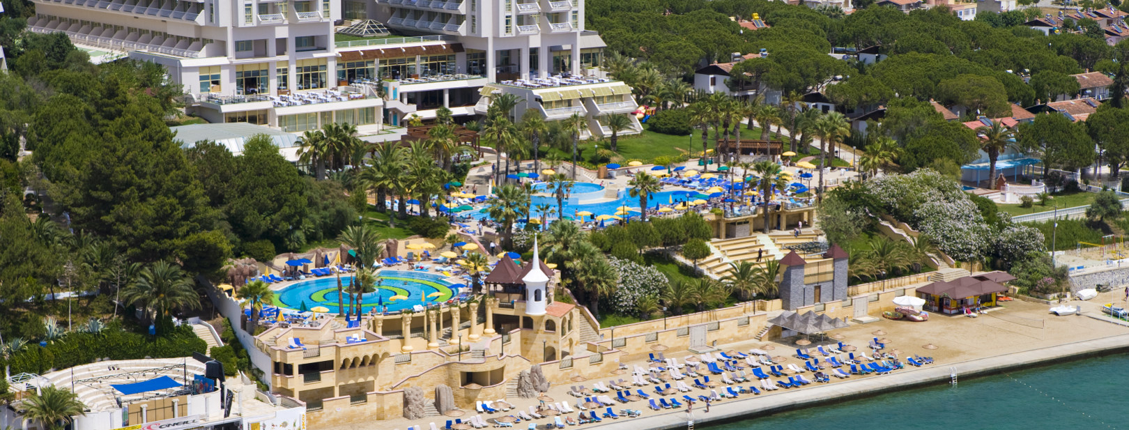Hôtel en bord de mer certifiée par un drapeau bleu « mer et plage propre », l’hôtel Fantasia Deluxe 5* vous accueille dans le quartier distingué de la région égéenne de Kusadasi.