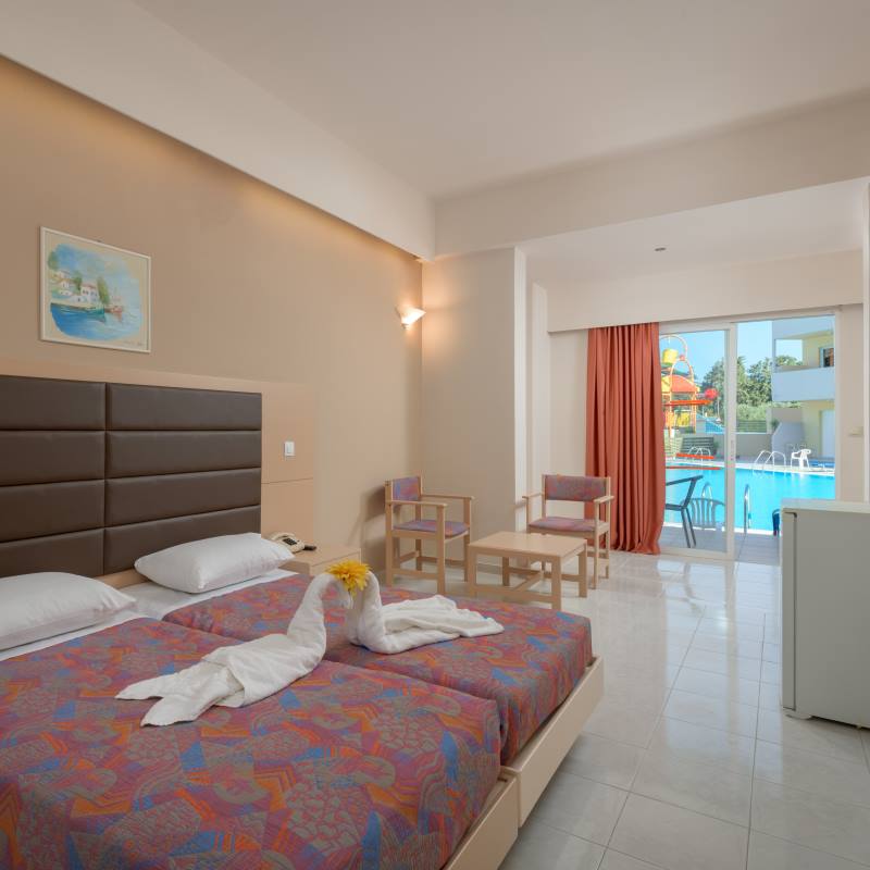 Animation internationale en journée et en soirée du 1er juin au 30 septembre. A votre disposition également : 5 piscines (ouverte de 10h00 à 18h00) et toboggans aquatiques pour enfants et adultes (ouvert de 10h30 à 17h30), court de tennis (sous caution), tennis de table (sous caution), billard*. Plage de Kolymbia située à environ 1400 mètres, navette gratuite environ 4 à 5 fois par jour proposée par l’hôtel.
