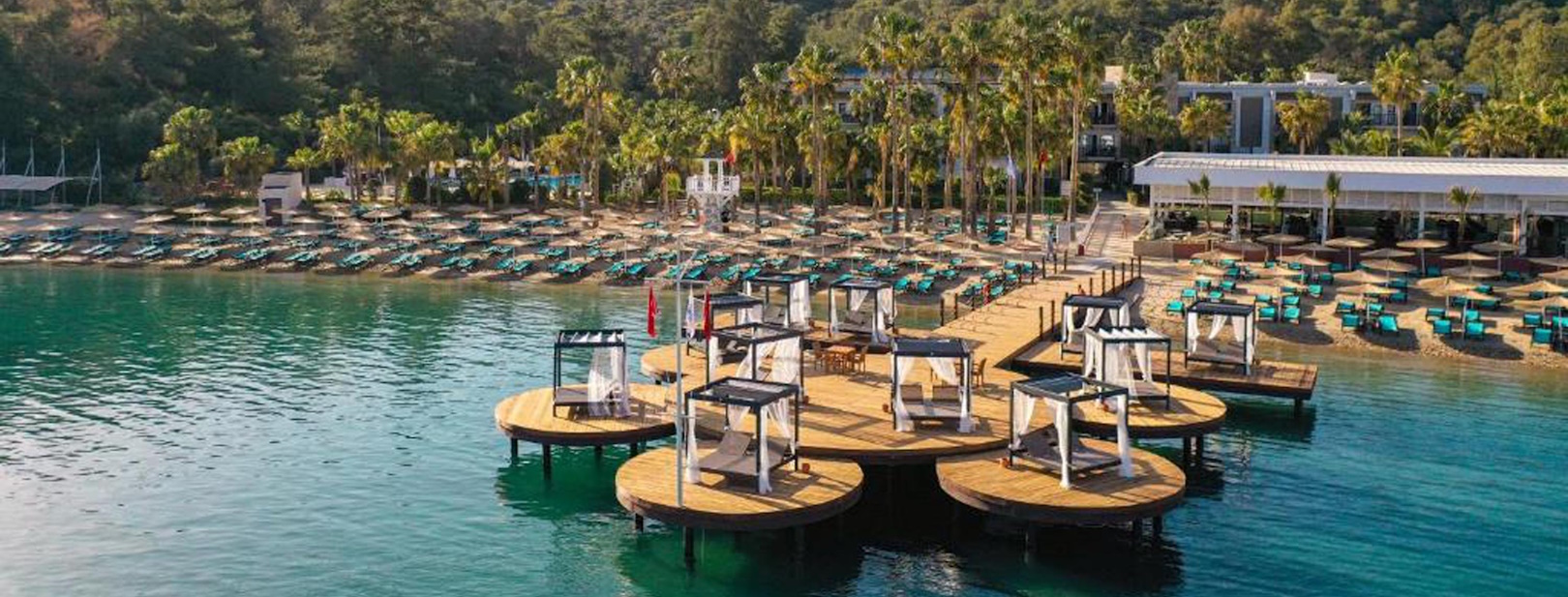 Votre hôtel L’hôtel Green Bay Resort & Spa 5* dispose de 280 chambres réparties sur 3 étages. L’hôtel a sa propre plage privée. À votre disposition : wifi, réception ouverte 24h/24, parking, fax/photocopie*, téléphone*, serviettes de plage et chaises longues, boutiques*, blanchisserie*, médecin*, photographe*, coiffeur*, service d’étage*...*Avec supplémentLes animaux ne sont pas admis dans l’hôtel. Votre chambre Pour un séjour agréable, vous serez logé en chambre standard vue jardin de 20 m². Elle est dotée d’un grand lit ou de 2 lits simples. La capacité maximale d’accueil en chambre est de 2 adultes.Toutes les chambres sont équipées de : climatisation, mini-bar (rempli d'eau et de boissons sans alcool, réapprovisionné quotidiennement et gratuitement), TV LCD, téléphone*, bouilloire, coffre-fort électronique, balcon ou balcon à la française, salle de bains avec douche et WC, sèche-cheveux, wifi.*Avec supplémentDans le cadre d'une chambre à usage triple vous serez logé en chambre large standard vue jardin d’environ 23m² avec une capacité maximale d’accueil en chambre de 3 adultes. Les chambres seront équipées d'un lit double (ou de 2 lits simples) et de 1 lit d'appoint (sofa, canapé lit).Vous pourrez également opter pour la chambre familiale vue jardin d’environ 34m² avec lit superposé, ayant une capacité maximale d’accueil en chambre de 2 adultes et 2 enfants ou 4 adultes. Restaurants et bars Séjournez l’esprit libre avec la formule tout inclus, qui comprend les repas servis sous forme de buffet au restaurant principal de l’hôtel, le Greenbay Main Restaurant, où vous découvrirez des saveurs locales, internationales et diététiques, ainsi que les boissons locales alcoolisées ou non et les snacks.Votre formule tout inclus comprend :Petit déjeuner : de 7h00 à 10h00Petit déjeuner tardif : de 10h30 à 11h00Déjeuner : de 12h30 à 14h30Snack : de 11h00 à 17h00Pâtisseries : de 14h00 à 20h00Glaces et fruits : de 11h00 à 18h00Dîner : de 19h00 à 21h00Snack de nuit : de minuit à 2h00 2 restaurants à la carte vous seront proposés, sur réservation :La Vela A'la Carte : de 19h00 à 21h00 (gratuit une fois pour un séjour de 4 nuits minimum) 6j/7Sailor A’la Carte : de 19h00 à 21h00 (avec supplément) 6j/7Plusieurs bars sont également disponibles pour vous désaltérer :Lobby bar : de 10h00 à minuitLagoon Bar : de 10h00 à 18h00Frozen Bar : de 10h00 à 18h00Freedom Bar : de 10h00 à 17h00Beach Bar : 24h/24Beer Garden : de 10h00 à 18h004.8 Feet Bar : de 10h00 à minuitClaim Bar : de 16h00 à 18h00*Avec supplémentLa formule tout inclus comprend les boissons 24h/24. Les horaires sont donnés à titre indicatif et peuvent être soumis à modification sans préavis. Les jus de fruits frais, les boissons importées, certains cocktails mais aussi les boissons en bouteille ne sont pas compris. Vos activités et loisirs Animation internationale en journée et en soirée par une équipe de professionnels. À votre disposition : plage privée, 4 piscines extérieures dont une pour enfants avec un toboggan et une pour adultes uniquement, court de tennis (équipement et éclairage*), basketball, beach volley, centre de fitness (de 7h00 à 19h00), tennis de table, aqua aérobic, fléchettes, mini-golf…Centre de spa proposant : bain turc, sauna, bain à vapeur, bain à remous*, soins* et massages**Avec supplémentPour les enfants : mini-club international pour les 4-12 ans, et un teen-club pour les 13-17 ans, de 10h00 à 23h00 proposant des activités adaptées à l’âge des enfants dont un mini cinéma, un mini-disco, des shows…À noter qu’au vu de la météo, certains équipements extérieurs peuvent ne pas être praticables et certaines activités annulées. Les activités, les sports et les soirées sont encadrés par une équipe d’animation internationale. Locate Situation L’hôtel Green Bay Resort & Spa 5* se situe à 25 km du centre de Bodrum et à 17 km de l’aéroport Bodrum Milas.