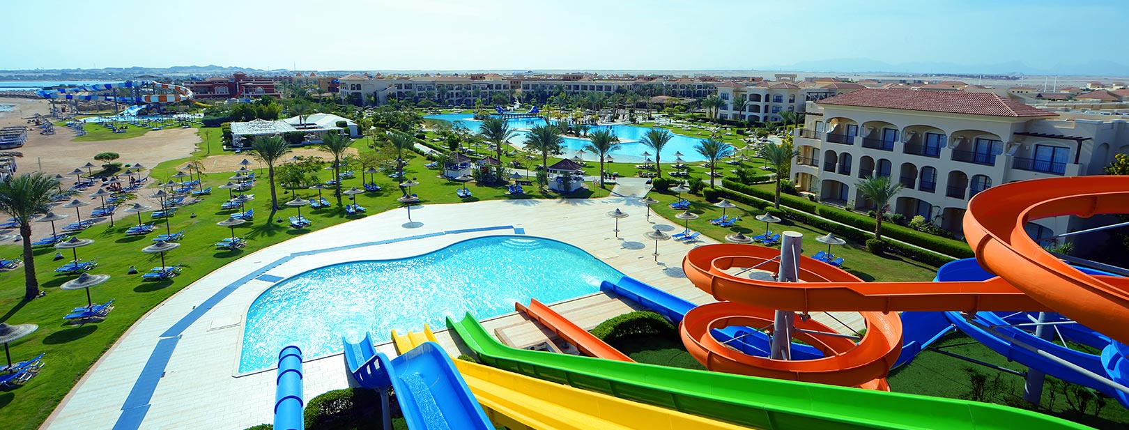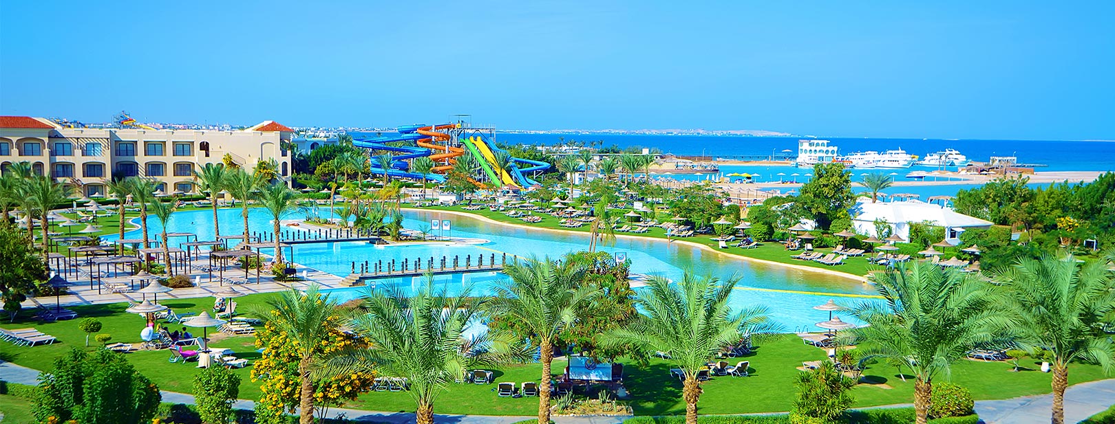 Votre hôtel L'hôtel Jaz Aquamarine Hurghada 5* se compose de 1001 chambres, et d’une multitude de services pour les voyageurs en quête de sérénité. Ce lieu réunit à la fois le service haut de gamme, le confort et l’extravagance. À votre disposition : room service*, boutique de souvenirs*, navette* direction aéroport et centre-ville, location de voiture et de limousine*, wifi, salon de beauté*, salle de sport*, centre de spa*, blanchisserie*, pharmacie*, médecin à la demande*, distributeur de billets, serviettes de plage.* Avec supplément Votre chambre Vous serez logé dans une chambre supérieure d’environ 35 m ² pouvant accueillir 2 adultes et 1 enfant avec un balcon ou une terrasse ainsi qu’un mobilier de jardin. La chambre est composée d’un lit double ou de deux lits simples, ainsi que d’un lit d’appoint. Moyennant un supplément vous pourrez séjourner en chambre standard avec vue piscine ou vue mer. Vous pourrez également profiter d’une chambre familiale pouvant accueillir jusqu’à 3 adultes et 1 enfant.Les chambres sont équipées de : téléphone et service international*, télévision par satellite, coffre-fort, nécessaire à thé et café, climatisation, minibar*, salle de bains avec baignoire ou douche et sèche-cheveux. Restaurants et bars Durant ce séjour, vous bénéficierez de la formule « tout inclus » de 10h à minuit qui comprend les repas servis au restaurant principal de l’hôtel Le Topaz où vous vous régalerez de buffets internationaux ainsi que des snacks.Petit déjeuner : de 07h00 à 10h30Déjeuner : de 12h30 à 14h30Dîner : de 18h30 à 21h30Dîner tardif (à la demande)Four corners restaurant : cuisine méditerranéenne, asiatique, italienne et orientale pour le petit-déjeuner et le dîner Des restaurants à la carte* sont disponibles sur réservation et avec supplément :Makai Tukai : cuisine asiatiqueSofra : cuisine du Moyen-OrientCorallo : spécialités de fruits de merNino’s : cuisine italienneAmaya : cuisine indiennePlusieurs bars sont à votre disposition pour vous relaxer tout en vous désaltérant :Fayrouz Bar : 09h00 - minuitFantasia Bar : 16h00 - minuitWaves Bar : 09h00 -12h00Bar de la plage Paradisio: 09h00 - 18h00 Bar de la piscine La Perla : 09h00 -18h00 Bar de la piscine Aquarius : 09h00 - 18h00Bar à narguilé*: 18h00 - minuit* Avec supplémentÀ noter que la formule tout inclus comprend les boissons de 09h00 à minuit (servies au verre). Les horaires sont donnés à titre indicatif et peuvent être soumis à modification sans préavis de la part de l’hôtelier et ce, sans que la responsabilité de Mondial Tourisme soit engagée. Les jus de fruits frais, les boissons importées, les cocktails mais aussi les boissons en bouteille ne sont pas compris. L’ouverture des points de vente extérieurs est soumise aux conditions climatiques. Vos activités et loisirs L’hôtel dispose de 17 piscines (chauffées en hiver), une piscine pour enfant et 22 toboggans (14 pour adultes et 8 pour enfants). Les activités proposées sont les suivantes : plage privée, terrain multisport, terrain de tennis, centre de plongée sous-marine*, mini-foot, beach volley, pétanque, gymnastique, water-polo, tennis de table, waterpolo, bain à remous sur la plage, planche à voile*, excursion en chameaux*, soirées et événements, discothèque (boissons avec supplément).Profitez du centre de spa Mividaspa* pour vous accorder un vrai moment de détente et de relaxation grâce aux prestations suivantes : salon de beauté, salle de sport, bain à remous, hammam, massages et soins. Vous aurez également la piscine couverte de l’hôtel Jaz Bluemarine à disposition.*Avec supplément Pour les enfants : une équipe dédiée accueillera vos enfants de 4 à 12 ans de 10h00 à 13h00 et de 15h00 à 17h00 au mini-club. Une aire de jeux sera à leur disposition. À noter qu’au vu de la météo et/ou en basse saison, certains équipements extérieurs peuvent ne pas être praticables et certaines activités annulées ou non programmées. Les activités, les sports et les soirées sont encadrées par une équipe d’animation internationale. Locate Situation L’hôtel se trouve à 23km du centre-ville et à 20km de l’aéroport.