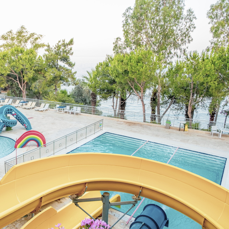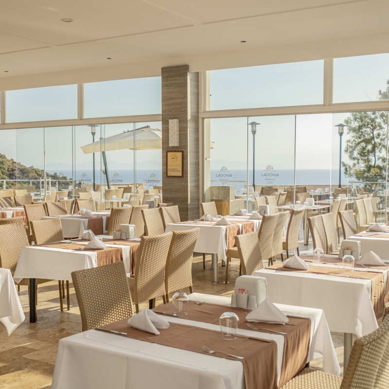 Votre hôtel Le Ladonia Hotels Adakule 5* situé en front de mer dispose de 326 chambres décorées avec soins. Afin de vous détendre durant votre séjour, un ravissant centre de spa et de bien être indispensable à la relaxation sera également à votre disposition À votre disposition : Réception 24h/24, room service*, blanchisserie*, boutiques*, serviettes de plage, transats et parasols, wifi à la réception.*Avec supplémentLes animaux ne sont pas autorisés dans l'hôtel. Votre chambre Vous serez logé en chambre standard vue jardin d’environ 25-30m², équipée d’un lit double ou deux lits simples et d’un lit d’appoint. La capacité maximale d'accueil est de 2 adultes et 1 enfant ou 3 adultes. Toutes ces chambres sont équipées de : télévision par satellite, air conditionné, téléphone*, mini bar* (rempli en eau seulement), coffre-fort, salle de bains avec douche WC et sèche-cheveux.*Avec supplémentDans le cas d'une chambre à usage triple ou quadruple, l'hôtel met à votre disposition une chambre double équipée d'un lit double et/ou deux lits twins et/ou d’un lit d'appoint (sofa, canapé lit).L’hôtel dispose de 3 chambres PMR de type standard (sur demande et selon disponibilité). Restaurants et bars Vous bénéficierez pendant votre séjour de la formule tout inclus qui comprend les repas, les snacks, les boissons locales alcoolisées ou non, ainsi que plusieurs activités. Les repas seront servis sous forme de buffet, au restaurant principal, qui vous proposera une cuisine internationale et locale.Votre formule ultra tout inclus comprend :Petit Déjeuner : de 07h00 à 10h00Petit-déjeuner tardif : de 10h00 à 10h30Déjeuner : de 12h30 à 14h30Snacks : de 12h00 à 16h30 Cookies : de 17h00 à 18h00Dîner : de 19h30 à 21h30Soupe du soir : de 23h30 à 00h30 L’hôtel dispose de deux restaurants à la carte de 19h00 à 21h00 sur réservation (gratuit une fois pour les séjour de 7 nuits minimum) :Cuisine Turc : (du 01/05 au 31/10)Poisson : (du 01/06 au 31/10)Pour vous rafraîchir tout au long de la journée, 4 bars seront également à votre disposition :Lobby bar : de 10h00 à 23h00Pool bar : de 10h00 à 19h00Sunset bar : 24h/24 (après 23h00 à 10h00 en extra)Beach bar : de 10h00 à 17h00Disco : de 23h30 à 02h00À noter que la formule tout inclus comprend les boissons de 10h00 à 23h00. Les horaires sont donnés à titre indicatif et peuvent être soumis à modification sans préavis. Les jus de fruits frais, les boissons importées, certains cocktails, le café turc mais aussi les boissons en bouteilles ne sont pas compris. Vos activités et loisirs Un large choix d’activités est disponible : animations douces, crique privée aménagée, deux piscines extérieures dont une pour enfants (de 10h00 à 18h00), toboggans (de 14h00 à 16h00), tennis de table, fléchettes, terrain de tennis, basketball, mini football, billards*, centre de spa (sauna, bain turc, massages * et soins *), mini-club de 4 à 12 ans (de 10h00 à 12h00 et de 14h30 à 17h00).*Avec supplémentÀ noter qu’au vu de la météo, certains équipements extérieurs peuvent ne pas être praticables et certaines activités annulées. Les activités, sports et soirées sont encadrées par une équipe d’animation internationale. Locate Situation L’hôtel se trouve à 2km du centre de Kusadasi, ville animée située à 90 km au sud d’İzmir, dans la province d’Aydın. L’aéroport international d’Izmir se trouve à 75km, et celui de Bodrum à 110km.