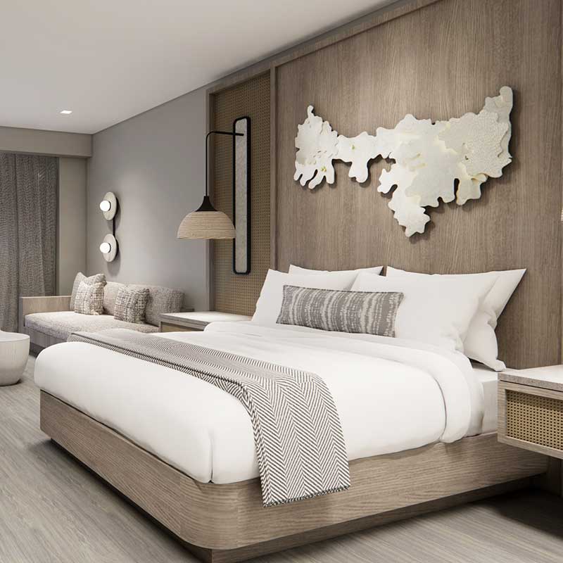 Votre hôtel Réservé aux adultes (18 ans et plus), le Lopesan Serenity Bay Resort, Spa & Casino 5* est situé à Punta Cana, à proximité immédiate de la plage de Bávaro, dans un cadre tropical propice à la détente et à l’évasion. L’hôtel propose de nombreuses installations et activités pour profiter pleinement de votre séjour sous le soleil des Caraïbes. Il dispose de 239 chambres réparties dans un bâtiment de 5 étages, toutes équipées du confort nécessaire afin de vous offrir un séjour agréable et reposant. À votre disposition : réception 24h/24, parking, service de change, distributeur automatique de billets, wifi, service de blanchisserie*, bibliothèque / point de lecture, service en chambre, service médical* (sur demande), salon de beauté* * Avec supplément Votre chambre Vous séjournerez en chambre Adultes Junior Suite Tropical View-King d’environ 42 m² pouvant accueillir jusqu’à 3 adultes. La chambre est équipée de : terrasse d’environ 12,64 m², 1 lit King size et 1 canapé lit, climatisation, télévision Smart, téléphone*, coffre-fort, salle de bains équipée avec douche ou baignoire et sèche-cheveux, cafetière, table et fer à repasser, minibar, room service 24h/24, wifi. *Avec supplément Restaurants et bars Profitez de la formule « tout inclus » et faites voyager vos papilles. Inclus dans votre formule :Petit-déjeuner : 6h30 à 10h30Déjeuner : 12h30 à 15h00Dîner : 18h30 à 22h30 Les restaurants : Le restaurant « The garden» propose une cuisine internationale sous forme de buffet.Restaurants à la carte, sous réserve de disponibilité et sur réservation : Lima (nikkei)Indra (indien)Kahlo (tex-mex)Sotto Terra (italien)Thai (thaïlandais)La Bohème (français)SPLASH N'SNACK Les bars : Calma bar (bar de l’hôtel)Sports barBaco wine cellar & shopIceberg (crèmes glacées)English pub À noter également qu’une tenue correcte est exigée lors des repas. Vos activités et loisirs À votre disposition : 1 piscine extérieure, piscine à vagues, parc aquatique, terrains de pickleball, salle de sport, bowling*, plongée sous-marine , planche de paddle, golf*, programme de bien-être vital, programme de sport, théâtre, discothèque, casino, spectacles et concerts en soirée.* Avec supplément A noter qu’au vu de la météo, certains équipements extérieurs peuvent ne pas être praticables et certaines activités annulées. Les activités, les sports et les soirées sont encadrés par une équipe d’animation internationale. L’hôtel dispose d’un centre de spa* proposant un large choix de soins et services (sauna*).*Avec supplément Locate Situation Le Lopesan Serenity Bay Resort, Spa & Casino 5* est situé à Punta Cana, sur la plage Playa Bávaro, et à environ 15–20 km de l’aéroport international de Punta Cana.