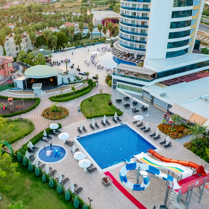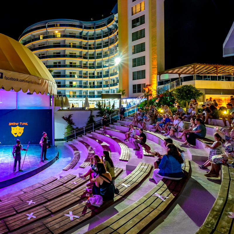 Votre hôtel Le Marilis Hill Resort Hôtel & Spa 5* fondé en 2020 dispose de 145 chambres toutes spacieuses et confortables. Cet hôtel offre une opportunité de vacances alliant confort et divertissement. A votre disposition : wifi gratuit dans les communs et dans les chambres, blanchisserie*, transat au bord de la piscine et plage, docteur sur demande*, boutiques*, coiffeur*, room service*. Une plage privée est à votre disposition à 900m de l’hôtel avec un système de navettes pour y accéder.*Avec supplément Votre chambre Durant votre séjour, vous serez logé en chambre standard de 25-31m² pouvant accueillir jusqu’à 3 adultes ou 2 adultes et 1 enfant. Toutes les chambres disposent de : balcon, salle de bain équipée avec douche et sèche-cheveux, wifi, coffre-fort*, tv satellite, mini-bar (rempli avec une bouteille d’eau le jour de votre arrivée), climatisation, téléphone*.*Avec supplémentDans le cadre d'une chambre à usage triple, vous serez logé en chambre double équipée d'un lit double (ou de 2 lits simple) et de 1 lit d'appoint (sofa, canapé lit) pouvant accueillir jusqu’à 2 adultes et 2 enfants. Restaurants et bars Séjournez l’esprit libre avec la formule ultra tout inclus, qui comprend les repas servis sous forme de buffet au restaurant principal de l’hôtel, où vous découvrirez des saveurs locales et internationales, ainsi que les boissons locales alcoolisées ou non et les snacks.Votre formule ultra tout inclus comprend :Petit-déjeuner : de 7h00 à 10h00Petit-déjeuner tardif : de 10h00 à 10h30Déjeuner : de 12h30 à 14h00Beach Snack : de 12h00 à 16h00Glace : de 13h00 à 16h00 (de juin à septembre)Confiserie : de 14h30 à 16h30 Dîner : de 19h00 à 21h00Night soup : de minuit à 1h00 Plusieurs bars seront à votre disposition pour vous permettre de vous rafraîchir :Pool Bar : de 11h00 à 23h00Beach Bar : de 11h00 à 18h00Lobby Bar : de 09h00 à 02h00*Avec supplémentÀ noter : Les restaurants et bars sont donnés à titre indicatif et peuvent être soumis à modification sans préavis. Les boissons alcoolisées en bouteille ne sont pas vendues. L’ouverture des points de vente extérieurs est soumise aux conditions climatiques. Vos activités et loisirs Pour rendre votre séjour agréable, profitez des nombreuses activités qui vous seront proposées parmi lesquelles : une piscine principale, une piscine avec toboggans et 2 piscines pour enfants, salle de fitness, tennis de table, aérobic, jeux de cartes, jeux d’échecs, fléchettes, jeux de piscine, cours de sport en journée, ambiance musicale au bord de la piscine en fonction des activités, spectacles nocturnes.Profitez du centre de spa pour vous accorder un vrai moment de détente et de relaxation grâce aux prestations suivantes : bain turc, sauna*, massage* et soins*Pour les enfants : Un mini club accueille vos enfants de 4 à 10 ans dans lequel des activités éducatives et amusantes sont proposées de 10h00 à 12h00 puis de 14h00 à 16h00. Les 2 piscines pour enfants dont une avec toboggan sont également à leur disposition.*Avec supplémentÀ noter : au vu de la météo et/ou en basse saison, certains équipements extérieurs peuvent ne pas être praticables et certaines activités annulées ou non programmées. Les activités, les sports et les soirées sont encadrées par une équipe d’animation internationale. Locate Situation À 80 km de l’aéroport d’Antalya, le Marilis Hill Resort Hôtel & Spa 5* se situe à 25 km de Sidé et à 40 km du centre d’Alanya.