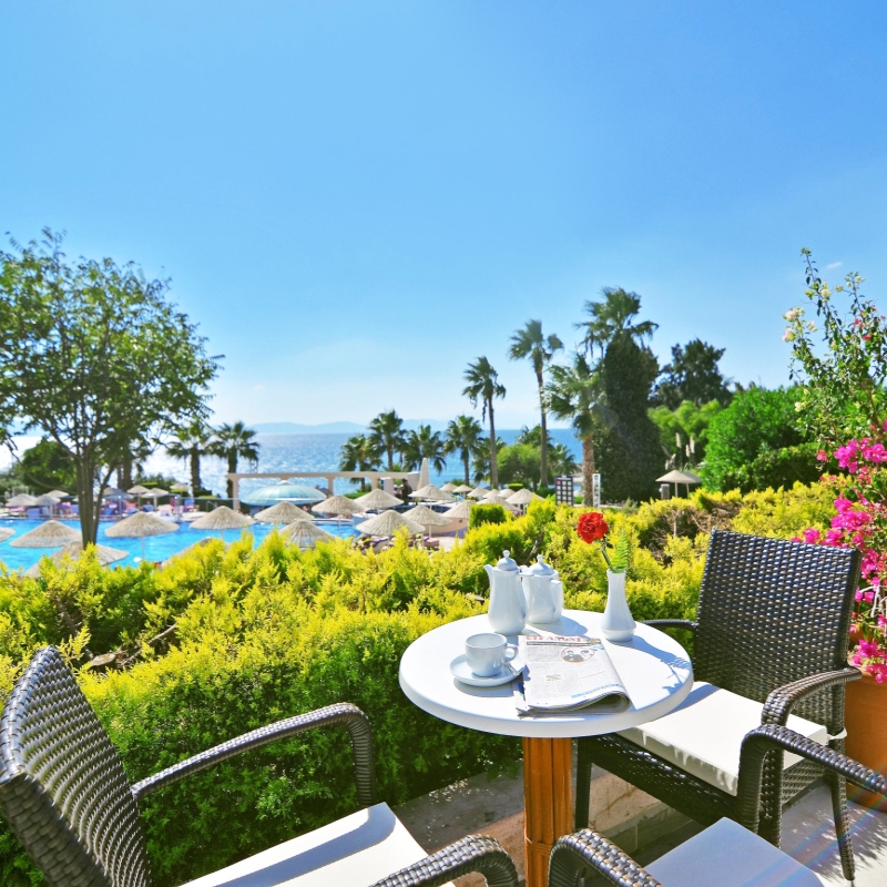 Votre Mondi Club Le Mondi Club Grand Blue Sky International 4* est situé en bord de mer, dans la renommée station balnéaire de Kusadasi. L’établissement se compose de 313 chambres toutes décorées avec soin et dispose d’un accès direct à la mer grâce à sa propre plage privée aménagée. À votre disposition : réception 24h/24, room service 24h/24*, blanchisserie*, location de voitures*, médecin*, service de bagagerie, parking, transats et parasols, serviettes de plage, wifi gratuit. *Avec supplément Votre chambre Durant votre séjour, vous serez logé dans une chambre standard vue jardin de 35 à 50m² comprenant un lit double ou 2 lits simples, ainsi qu’un lit d’appoint. La capacité d’accueil est de 3 adultes et 1 enfants ou 3 adultes. Toutes les chambres sont équipées de : balcon ou terrasse, climatisation, minibar, coffre-fort, TV par satellite, ligne téléphonique directe*, salle de bains avec baignoire, WC et sèche-cheveux, wifi.Dans le cadre d'une chambre à usage quadruple, vous serez logé en chambre double équipée d'un lit double (ou de 2 lits twins) et de 1 ou 2 lits d'appoint (sofa, canapé lit), pouvant accueillir jusqu’à 3 adultes et 1 enfant. L’hôtel n’est pas adapté aux personnes à mobilité réduite. *Avec supplément Restaurants et bars Pour des vacances réussies, vous bénéficierez de la formule ultra tout inclus qui comprend aussi bien les repas que les boissons locales et les snacks. Les repas seront servis sous forme de buffet, composés de spécialités internationales et locales.Votre formule ultra tout inclus comprend :Petit déjeuner : de 7h00 à 10h00Petit déjeuner tardif : de 10h00 à 10h30Déjeuner : de 12h30 à 14h00Crêpes : de 12h00 à 17h00Patisseries : de 14h00 à 17h00Glaces : de 14h00 à 15h00 (du 01/06 au 20/09)Dîner : de 19h00 à 21h00Soupe de nuit : de 23h30 à 02h00 3 restaurants à la carte sont disponibles de 19h00 à 21h00 sur réservation (gratuit une fois pour les séjours de 7 nuits minimum) :Ottoman restaurant : de 19h00 à 21h00 (du 01/06 au 15/09)Italian restaurant : de 19h00 à 21h00 (du 01/06 au 15/09)Blue sea food restaurant : de 19h00 à 21h00 (du 01/06 au 15/09)Plusieurs bars seront à votre disposition pour vous permettre de vous rafaichir :Beach Bar : de 10h30 à 18h30Poolside Bar : de 10h30 à 18h30Umbrella Bar : de 18h30 à minuit Lobby Bar : 24h/24Blue Corner Cafe : 24h/24La formule ultra tout inclus comprend les boissons 24h/24 dans les lieux mentionnés. Les horaires sont donnés à titre indicatif et peuvent être soumis à modification sans préavis. Les jus de fruits frais, les boissons importées, certains cocktails mais aussi les boissons en bouteilles ne sont pas compris. Tenue correcte exigée lors des diners. Vos activités et loisirs Les animateurs francophones Mondi Club, parfaitement intégrés à l’équipe d’animation internationale de l’hôtel, vous proposeront des activités sportives et ludiques en journée ainsi que des animations nocturnes. À votre disposition : plage privée, deux piscines extérieures dont une pour enfants, terrain de tennis, tennis de table, fléchettes, aérobics, billards*, football, sports nautiques*, live music. Un centre de spa est disponible avec les équipements suivants : sauna, hammam, massages* et soins*.*Avec supplémentPour les enfants : un mini club international est à la disposition de vos enfants de 4 à 12 ans, de 10h30 à 12h30 et de 14h30 à 17h00.À noter qu’au vu de la météo, certains équipements extérieurs peuvent ne pas être praticables et certaines activités annulées. Les activités, sports et soirées sont encadrées par une équipe d’animation internationale. Locate Situation L’hôtel est situé en bord de mer, à 3km du centre de kusadasi et à 75km de l’aéroport international d’Izmir.