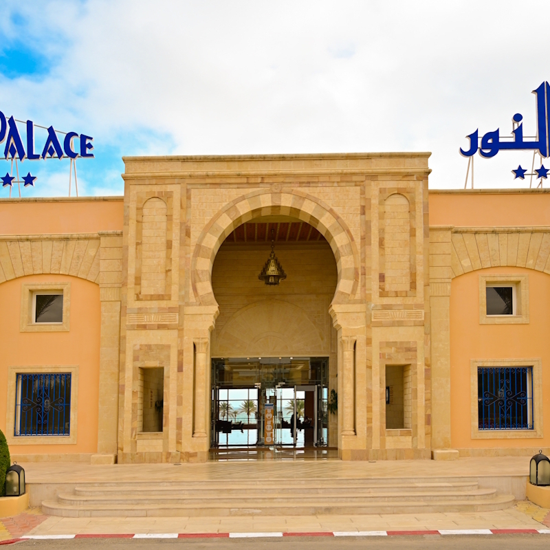 Le Nour Palace Resort & Thalasso 5* est un vaste complexe hôtelier qui dispose de 547 chambres réparties dans un bâtiment central de 5 étages. Situé dans la zone touristique de Mahdia, connue pour ses plages idylliques, vous profiterez d'un cadre vibrant d'activités, idéal pour toute la famille.