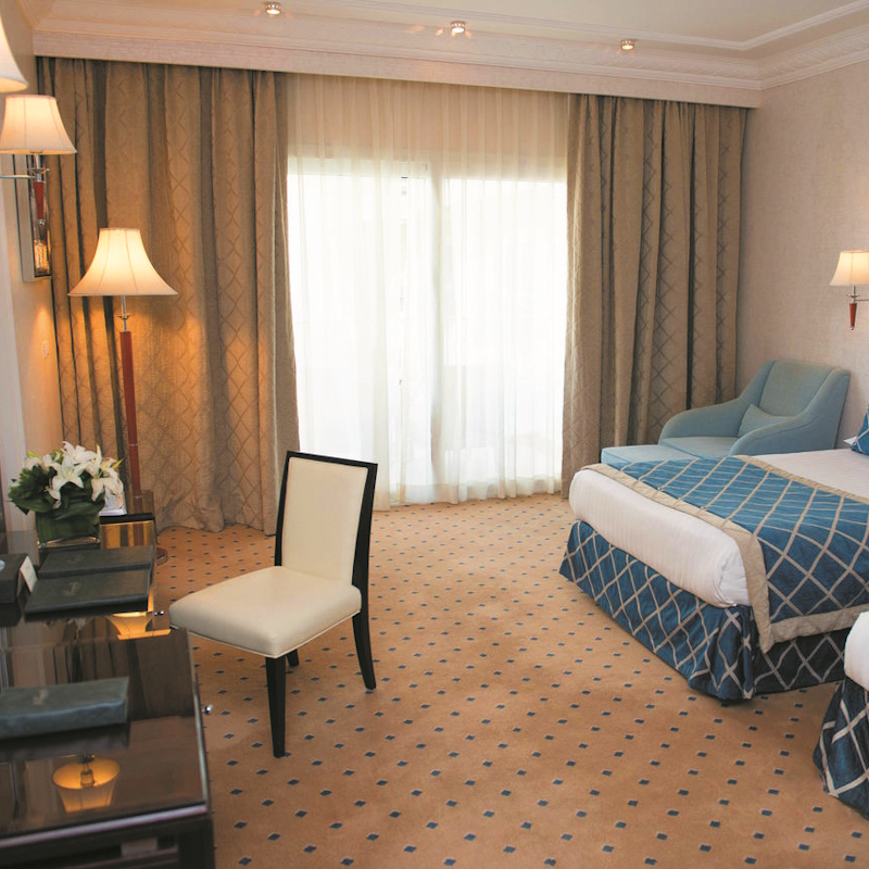 Vous séjournerez en chambre standard vue jardin de 49m² pouvant accueillir 3 personnes (vue sur jardin ou piscine en supplément). L’hôtel met à disposition une chambre équipée d’un lit double ou deux lits simples ainsi qu’un lit d’appoint. Les chambres sont équipées de : balcon ou terrasse, salle de bain avec baignoire ou douche et sèche-cheveux séparées, service à thé et café, mini bar*, coffre-fort*, télévision, wifi, room service*.