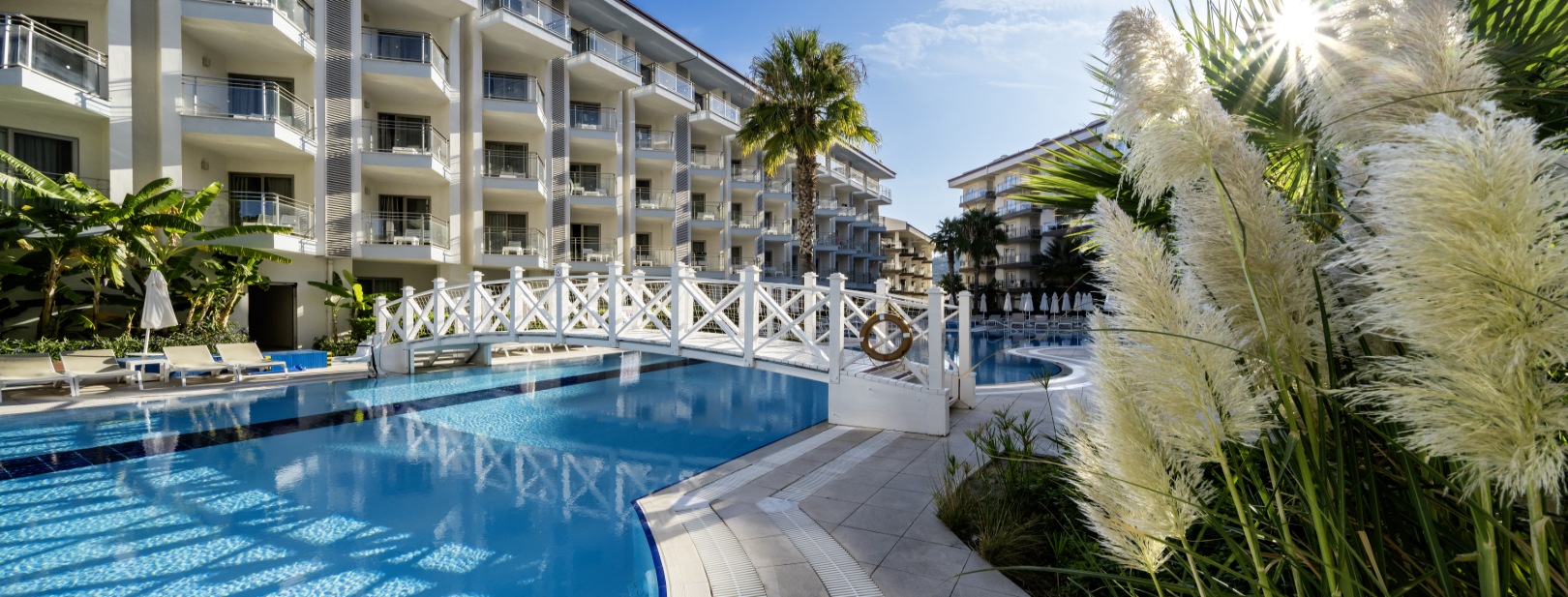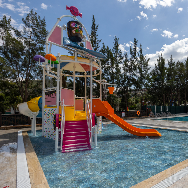 Deux piscines principales et une piscine pour enfant seront à votre disposition ainsi que des toboggans (de 10h30 à 12h30 et de 14h00 à 17h00). Une animation légère en journée et différentes activités vous seront proposées parmi lesquelles : tennis de table, fléchettes, step aérobics, jeux de piscines, karaoké, golf*, billards*, jeux d’arcades, spa (sauna, bain turc, salle de fitness, massages* et soins*), animations de jour et de nuit, spectacle, mini club (de 4 à 12 ans), mini disco (de 21h00 à 21h30).