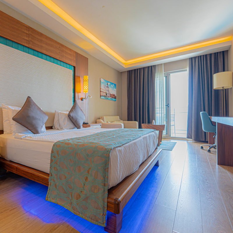 Pour rendre votre séjour agréable, vous serez logé en chambre supérieure d’environ 34 m², disposant toutes d’un grand lit ou deux lits simples. La capacité maximale d'accueil en chambre est de 2 adultes + 1 enfant + 1 bébé. La chambre dispose des équipements suivants : écran de télévision satellite LCD, balcon, air conditionné, téléphone*, coffre-fort, mini bar, salle de bains avec douche et sèche-cheveux, wifi, thé/café.