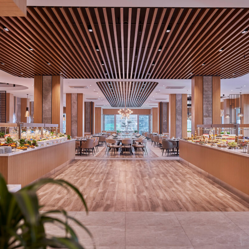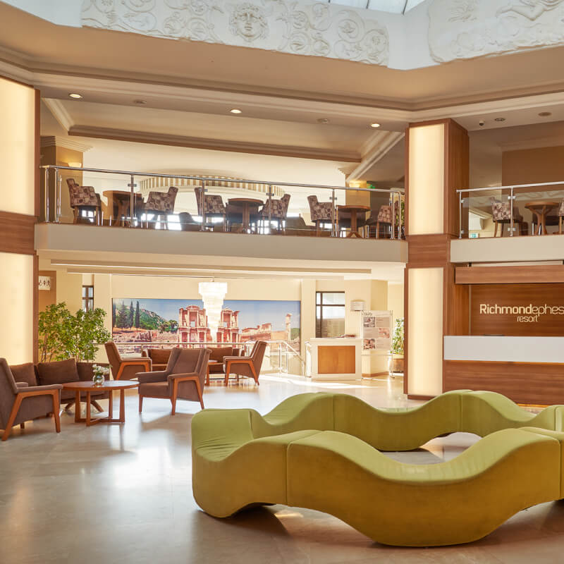 Votre hôtel L’hôtel Richmond Ephesus Resort 5* dispose de 264 chambres, rénovées en 2014. Il se compose d’un bâtiment principal et de charmants bungalows de 2 étages disséminés dans un grand jardin à la végétation luxuriante, pour un séjour sous le signe de la détente. La plage privée est située en face de l’hôtel. À votre disposition : room service 24h/24*, médecin*, blanchisserie*, pressing*, boutiques*, bijouterie*, salon de coiffure*, location de voitures*, baby-sitting*, photographe*, parking, wifi.*Avec supplémentLes animaux ne sont pas admis dans l’hôtel. Votre chambre Pour un séjour empreint de sérénité, vous serez logé en chambre standard située dans le bâtiment principal du complexe. La capacité maximale d’accueil en chambre est de 2 adultes et 1 enfant ou 3 adultes. Les chambres sont toutes équipées de : climatisation centralisée, minibar (1 bouteille d’eau et 2 boissons non alcoolisées, chaque jour par personne), télévision par satellite, téléphone ligne directe*, balcon, salle de bains avec toilettes, douche et sèche-cheveux, wifi.*Avec supplémentSi vous voyagez en famille, vous aurez la possibilité de séjourner dans une chambre un peu plus spacieuse, la family room avec un lit double (ou de 2 lits twins) et 1 ou 2 lits d'appoint (sofa, canapé lit), pouvant accueillir jusqu’à 4 personnes.L’hôtel dispose de 4 chambres PMR de type standard, vue jardins, sans balcon avec une capacité maximale de 2 personnes (sur demande et selon disponibilités). Restaurants et bars Séjournez l’esprit libre avec la formule tout inclus, qui comprend les repas servis sous forme de buffet au restaurant principal de l’hôtel où vous découvrirez des saveurs locales, internationales et diététiques ainsi que les boissons locales alcoolisées ou non et les snacks.Votre formule tout inclus comprend :Petit déjeuner : de 7h00 à 10h00Petit déjeuner tardif : de 10h00 à 10h30Déjeuner : de 12h30 à 14h30Snack-bar : de 12h30 à 17h00Glaces : de 16h00 à 17h00Pâtisserie : de 17h00 à 18h00Dîner : de 19h30 à 21h30Snack de nuit : de minuit à 1h00 Afin de découvrir d’autres saveurs, 3 restaurants à la carte : italien, turc et de poissons seront également à votre disposition (du 15/05 au 15/10, sur réservation et avec supplément). Dans le restaurant de fruits de mer, le service se fait sous forme de menu fixe / frais de service : 10,00 € par personne.Pour les personnes séjournant au minimum 7 nuits, du 1er au 30 avril et du 16 au 31 octobre, vous pourrez bénéficier d’un repas gratuit une fois par séjour dans le restaurant Efes.À votre disposition également, 6 bars :Lobby rich bar : de 10h00 à minuitBeach bar : de 10h00 à minuitPool bar : de 10h00 à 19h00Snack-bar et café : de 12h30 à 18h00Amphitheater bar : de 22h00 à minuitÀ noter que la formule all inclusive comprend les boissons de 10h00 à minuit. Les horaires sont donnés à titre indicatif et peuvent être soumis à modification sans préavis. Les jus de fruits frais, les boissons importées, les cocktails mais aussi les boissons en bouteille ne sont pas compris. Vos activités et loisirs Amateur de farniente, vous pourrez vous prélasser sur la grande plage de sable au pied de l’hôtel ou, pourquoi pas, au bord de l’une des 5 piscines de l’hôtel, dont une piscine intérieure (fermée du 15/06 au 30/09) et une piscine pour enfants et une piscine équipée de toboggans pour de joyeuses glissades en famille. Une équipe d’animation vous proposera des activités en journée et des spectacles en soirée. À votre disposition également : amphithéâtre, cours de danse, tir à l’arc, gymnastique, courts de tennis (éclairage avec supplément), tennis de table, pétanque, aérobic, step, basket-ball (éclairage avec supplément), mini-football (éclairage avec supplément), mini-golf (éclairage avec supplément), beach-volley, fléchettes, billard*, salle de fitness, sports nautiques* (jet-ski, banane, plongée), canoë, pédalo, animations, musique live (5 jours par semaine), discothèque*.L’hôtel dispose également d’un centre de spa avec les équipements suivants : hammam, sauna, chambre à vapeur, bain à remous*, massages*, soins du corps et du visage*.Pour Les enfants : un mini-club international sera à votre disposition pour les enfants de 4 à 12 ans. Au programme : aire de jeux, piscine pour enfants, jardin d’enfants, buffet-enfants au restaurant, mini-disco et de nombreuses activités pour faire de leur séjour une expérience inoubliable.*Avec supplémentÀ noter qu’au vu de la météo, certains équipements extérieurs peuvent ne pas être praticables et certaines activités annulées. Les activités, les sports et les soirées sont encadrés par une équipe d’animation internationale. Locate Situation L’hôtel est situé dans la baie de Pamucak. La station balnéaire animée de Kusadasi n’est qu’à 12 km et le célèbre site archéologique d’Éphèse à 6 km. L’aéroport international d’Izmir se situe, quant à lui, à 60 km environ.
