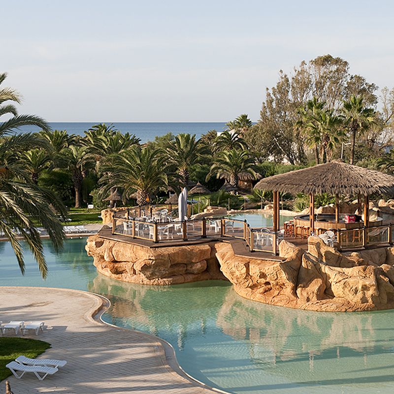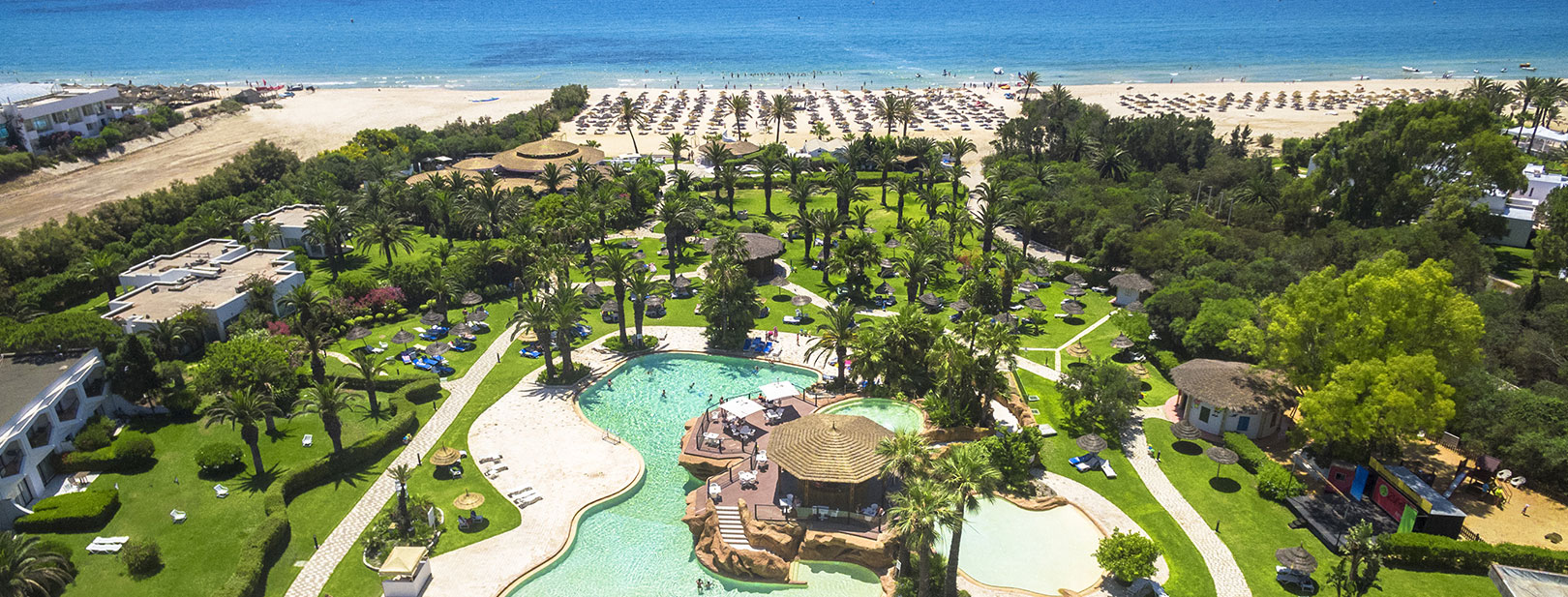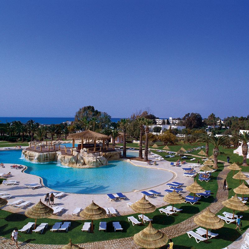Votre hôtel Disposant de 391 chambres, il se déploie au cœur d’un jardin de 9 hectares où se côtoient généreusement palmiers et oliviers. L’accueil y est excellent et l’équipe d’animation saura vous faire passer de très agréables moments. Ajoutez à cela une nourriture savoureuse et variée, un personnel toujours aux petits soins et vous aurez tous les ingrédients nécessaires pour passer de formidables vacances. Pour votre confort : réception 24h/24, chaises longues et parasols à la piscine et à la plage, serviettes de plages (avec caution), wifi, service de buanderie*, baby-sitting*, boutiques*, photographe*, change*, parking, salle de jeux*, discothèque en été.* Avec supplément Votre chambre Vous serez logé en chambre standard spacieuse avec balcon ou terrasse. La chambre peut accueillir 3 personnes. Toutes les chambres sont équipées de : télévision satellite, téléphone, coffre-fort*, climatisation (du 01/06 au 30/09), chauffage (du 1/11 au 31/03), mini-frigo, wifi, salle de bains avec douche ou baignoire et sèche-cheveux.*Avec supplémentMoyennant un supplément, vous pourrez loger dans une chambre vue mer accueillant jusqu’à 2 personnes mais également dans une chambre familiale accueillant jusqu’à 3 adultes et 1 enfant.Dans le cas d’une chambre à usage triple ou quadruple, l’hôtel met à disposition des clients une chambre double équipée de 1 lit double (ou de 2 lits twin) et de 1 ou 2 lits d’appoints (sofa, canapé-lit).L’hôtel ne dispose pas de chambre PMR mais dans les espaces communs, l’ascenseur et à l’entrée du restaurant, des accès sont mis en place pour les PMR. Restaurants et bars Séjournez l’esprit libre avec la formule « tout inclus », qui comprend les repas servis sous forme de buffet au restaurant principal de l’hôtel, où vous découvrirez des saveurs locales et internationales, ainsi que des boissons locales alcoolisées ou non et des snacks. Votre formule « tout inclus » comprend :Petit déjeuner : de 06h00 à 10h00Petit déjeuner tardif continental : de 10h00 à 12h00Déjeuner : de 12h00 à 14h00Dîner : de 19h00 à 21h30Restaurant plage Barbecue : de 12h00 à 14h30 (en été) Vous trouverez également des restaurants à la carte* ouverts en été:Le Panache, restaurant méditerranéen : de 19h00 à 21h00 (1 fois/séjour et sur réservation)Dragon, restaurant asiatique : de 19h00 à 21h00Le palmier, restaurant snack : de 12h00 à 17h00Pour vous rafraîchir, vous pourrez disposer de plusieurs bars et d’un café :Bar plage : de 09h00 à 17h00Bar piscine : de 09h00 à 18h00Oasis Lobby Bar (en été) : de 09h00 à 19h00Carillon Piano Bar* (en été) : de 18h00 à 01h00Bar disco Le Théâtre (en été) : de 20h00 à 02h00Café maure* (en été) : de 17h00 à 23h00* Avec supplémentÀ noter que la formule « tout inclus » comprend les boissons de 09h00 à 23h30 (servies au verre). Les horaires sont donnés à titre indicatif et peuvent être soumis à modification sans préavis de la part de l’hôtelier et ce, sans que la responsabilité de Mondial Tourisme soit engagée. Les jus de fruits frais, les boissons importées, les cocktails mais aussi les boissons en bouteille ne sont pas compris. Vos activités et loisirs Une équipe de professionnels vous proposera une animation en journée avec des activités sportives et ludiques, ainsi qu’une animation en soirée (spectacles à thème, cabarets, sketches, musique live, karaoké, etc.) À votre disposition : plage de sable fin, 2 piscines extérieures dont 1 adulte only, 1 piscine intérieure (chauffé de novembre à mars), salle de fitness, bains à remous, 10 courts de tennis en terre battue (1h par jour pour 2 personnes, réservation 24h00 à l’avance), leçon de tennis*, tennis de table, équitation*, mini-golf, aérobic, aqua gym, fléchettes, tir à l’arc, beach volleyball, bateau à pédales, kayak et planche à voile de mai à octobre, sports nautiques motorisés*, practice de golf*, salle de jeux*, discothèque (de juin à septembre). Un centre de spa* sera à votre disposition pour les prestations suivantes : hammam, massage, soins esthétiques, salle de fitness. L’hôtel est très prisé des joueurs de tennis, grâce à ses 10 courts en terre battue, mais également des golfeurs qui peuvent pratiquer sur 2 des meilleurs parcours de Tunisie : le Citrus (2x18 trous) et le Yasmine (1x18 trous).Situés à quelques kilomètres de l’hôtel, une navette gratuite est mise à votre disposition.*Avec supplémentPour les enfants : un mini-club avec aire de jeux est proposé aux enfants de 4 à 12 ans. Ouverture de 10h à 12h et de 15h à 17hÀ noter qu’au vu de la météo, certains équipements extérieurs peuvent ne pas être praticables et certaines activités annulées. Locate Situation À seulement 5 km du centre-ville de Hammamet, à 70 km de l’aéroport de Tunis et à 100 km de l’aéroport de Monastir.