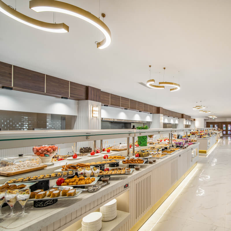 Pour un séjour en toute sérénité, vous bénéficierez de la formule tout inclus en hiver et de la formule ultra tout inclus en été. Les repas sont servis sous forme de buffet au restaurant principal "Moon".