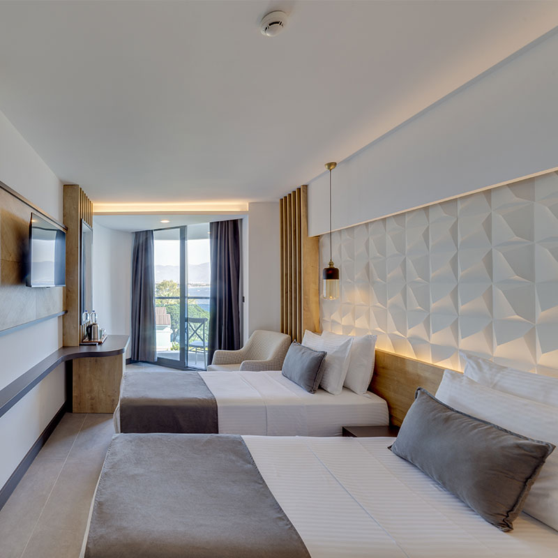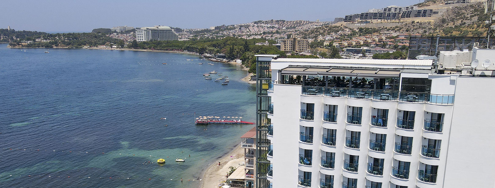 Votre hôtel Profitez d’un bain de soleil sur la plage privée à proximité ou au centre de bien-être de l’hôtel Signature Blue Resort 5*. L’hôtel dispose de 111 chambres parfaitement équipées. Vous y passerez de très bonnes vacances. À votre disposition : Réception 24h/24, room service 24h/24*, service médical*, blanchisserie*, boutiques*, serviettes de plage, transats et parasols, wifi gratuit.*Avec supplémentLes animaux ne sont pas admis dans l’hôtel. Votre chambre Vous serez logé en chambre standard deluxe d’environ 22m², décorée avec goût sur un design moderne. Ces chambres peuvent accueillir jusqu’à 3 adultes ou 2 adultes et 1 enfant. Elles sont toutes équipées de : télévision par satellite, air conditionné, téléphone*, coffre-fort, mini-bar (boissons sans alcools 1er jour, non renouvelé), salle de bain avec douche et sèche-cheveux, thé/café, wifi.*Avec supplémentDans le cadre d'une chambre à usage triple ou quadruple, vous serez logé en chambre double équipée d'un lit double (ou de 2 lits twins) et de 1 ou 2 lits d'appoint (sofa, canapé lit).L’hôtel dispose d’une chambre PMR (sur demande et selon disponibilités). Restaurants et bars Vous bénéficierez de la formule tout inclut, qui comprend aussi bien les repas, les boissons locales et les snacks. Les repas seront servis sous forme de buffet, au restaurant principal de l’hôtel. Le restaurant sert une cuisine internationale et locale.Votre formule tout inclus comprend :Petit déjeuner : de 7h00 à 10h00Déjeuner : de 12h30 à 14h00Diner : de 19h30 à 21h30Snack : de 14h00 à 16h00Tea time : de 17h00 à 18h00Snacks du soir : de 23h30 à minuit Un choix de boissons locales alcoolisées ou non sera également à votre disposition tout au long de la journée aux bars suivants :Lobby bar : de 10h00 à minuitSnack bar : de 10h00 à 18h00La formule tout inclus comprend les boissons de 10h00 à minuit. Les horaires sont donnés à titre indicatif et peuvent être soumis à modification sans préavis. Les jus de fruits frais, les boissons importées, les cocktails mais aussi les boissons en bouteilles ne sont pas compris. Vos activités et loisirs Le Signature Blue Resort 5* dispose d’une plage privée, aménagée avec parasols et transats. A votre disposition : une piscine intérieure chauffée (en hiver) avec bassin pour enfants, sports nautiques*, spa (sauna, bain turc, massages* et soins*).*Avec supplémentÀ noter qu’au vu de la météo, certains équipements extérieurs peuvent ne pas être praticables et certaines activités annulées. Les activités, les sports et les soirées sont encadrés par une équipe d’animation internationale. Locate Situation Le Signature Blue Resort 5* est situé sur la plage à seulement 5 km du centre-ville de Kusadasi et de ses nombreux magasins, restaurants et boutiques. L’aéroport d’Izmir est à 75 km.