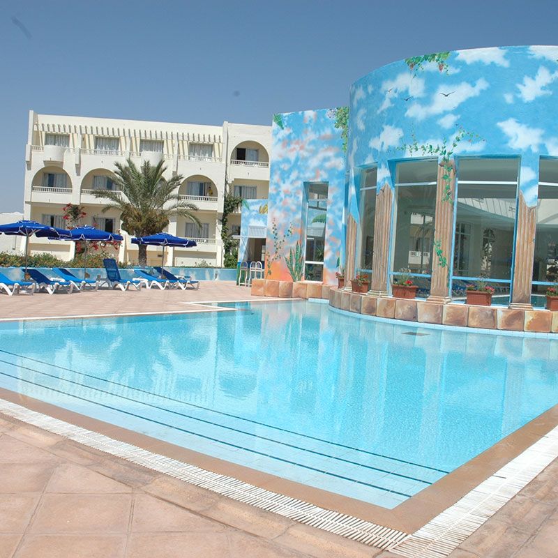 Votre hôtel Le Vincci Dar Midoun dispose de 285 chambres réparties dans un bâtiment central de 3 étages. Sa situation fait de lui un choix idéal pour les familles en quête de soleil, de découverte et de détente. Á votre disposition : réception 24h/24, wifi gratuit, service de change, serviettes de plage (contre caution), blanchisserie* location de voiture*, moto*, bicyclette et quad*, boutiques*, parking. Accepte les animaux domestiques, de moins de 5 kg, (dans les chambres et non dans les espaces communs).* Avec supplément Votre chambre Pour un séjour sous le signe du confort, vous serez logé en chambre standard vue jardin d’environ 34 m², la capacité maximale de la chambre est de 3 adultes ou 2 adultes et 2 enfants. La chambre est équipée de : 2 petits lits jumeaux, climatisation (15/06 – 15/09), chauffage (du 01/12 au 31/03), télévision par satellite, téléphone avec ligne direct internationale, mini-frigo, coffre-fort*, salle de bains équipée avec baignoire et sèche-cheveux, wifi.* Avec supplémentDans le cas d’une chambre à usage triple ou quadruple, l’hôtel met à disposition des clients une chambre double équipée de 2 lits petits lits et d’un ou 2 lits d’appoints (banquette). Restaurants et bars Séjournez l’esprit libre avec la formule "tout inclus" comprenant les repas servis sous forme de buffet au restaurant principal de l’hôtel l’Olivier, où vous découvrirez aussi bien des saveurs locales et internationales que des boissons locales, alcoolisées ou non.Votre formule "tout inclus" comprend :Petit déjeuner : de 7h00 à 10h00Déjeuner : de 12h30 à 14h30Dîner : de 18h30 à 21h00 en hiver et de 19h00 à 21h30 en été Envie de goûter à d’autres saveurs ? Vous aurez également la possibilité de prendre vos repas dans l’un des restaurants à la carte* de l’hôtel (avec réservation 24h à l’avance, 1 fois par séjours/personne).Restaurant La Bottega (cuisine italienne) 20h00 à 22h00Restaurant El Fondouk (cuisine tunisienne) 20h00 à 22h00Restaurant The Wave* Pour vous rafraîchir, plusieurs bars seront également à votre disposition : Bar central “La Tulipe”: 9h00 à 00hBar piscine “Le Palmier”: 10h00 à 18h00 de juin à octobre Café maure “El Fel”: 15h00 à 23h00*Avec supplément À noter que la formule "tout inclus" comprend les boissons de 09h00 à minuit (servies au verre). Les horaires sont donnés à titre indicatif et peuvent être soumis à modification sans préavis de la part de l’hôtelier et ce, sans que la responsabilité de Mondial Tourisme soit engagée. Les jus de fruits frais, les boissons importées, les cocktails mais aussi les boissons en bouteille ne sont pas compris. Vos activités et loisirs Pour rendre votre séjour agréable, profitez des nombreuses activités qui vous seront proposées parmi lesquelles : plage privée avec chaises longues et parasols, Base nautique privée (payant), 2 bains à remous, 2 piscines extérieures, 1 piscine pour enfant, 1 couverte et chauffée (du 1/12 au 31/03), 3 courts de tennis en terre battue* (Raquettes et balles de tennis avec caution), tir à l’arc, aérobic, tennis de table, 1 terrain de padel*, volley-ball, aquagym, pétanque, fléchettes. Une équipe d’animateurs vous proposera une animation en journée avec des activités sportives et ludiques ainsi que des animations en soirée. Casino, bowling, parcours de golf * 27 trous à proximité de l’hôtel* Profitez du centre de balnéothérapie* (ouvert de 09h00 à 19h00) pour vous accorder un vrai moment de détente et de relaxation grâce aux prestations suivantes : 1 salle de relaxation, 2 cabines de soins esthétiques, 4 cabines de massage, 1 cabine de douche à jet, 2 cabines de bain bouillonnant, 1 sauna, 1 hammam. Pour les enfants : Un mini club accueille vos enfants de 4 à 12 ans. Ouvert toute l’année, en été de 10h00 à 18h00 et en hiver de 10h00 à 16h30. Baby Sitting* (sur demande, réservation la veille et payant).*Avec supplémentÀ noter : au vu de la météo et/ou en basse saison, certains équipements extérieurs peuvent ne pas être praticables et certaines activités annulées ou non programmées. Les activités, les sports et les soirées sont encadrées par une équipe d’animation internationale. Locate Situation Dans la zone touristique de Midoun. L’hôtel est à 25 km de l’aéroport de Djerba et à 17 km de Houmt Souk.