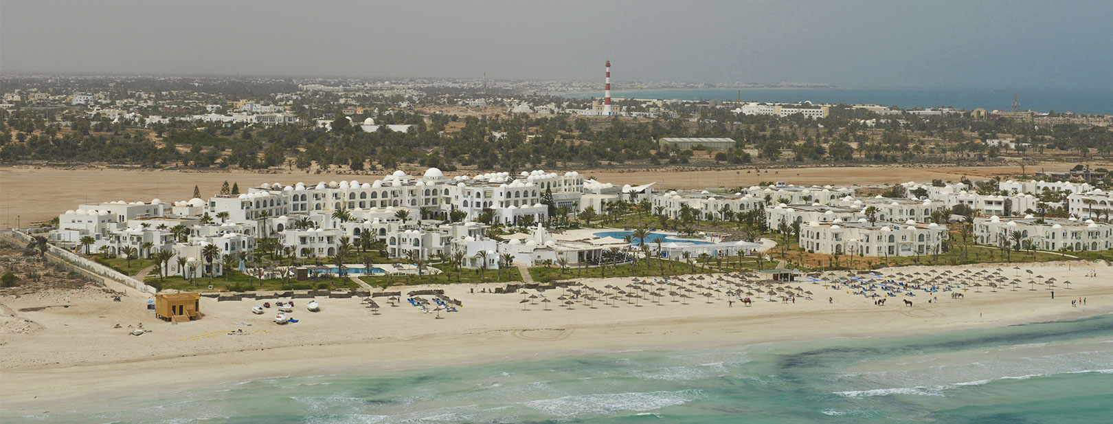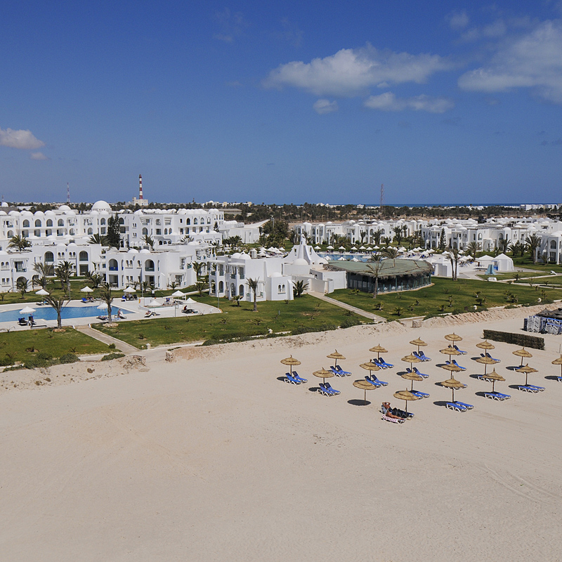 Á 32 km de l’aéroport de Djerba, 10 km de Midoun et 25 km de Houmt Souk, la capitale de l’île.